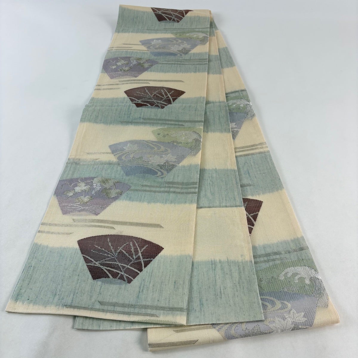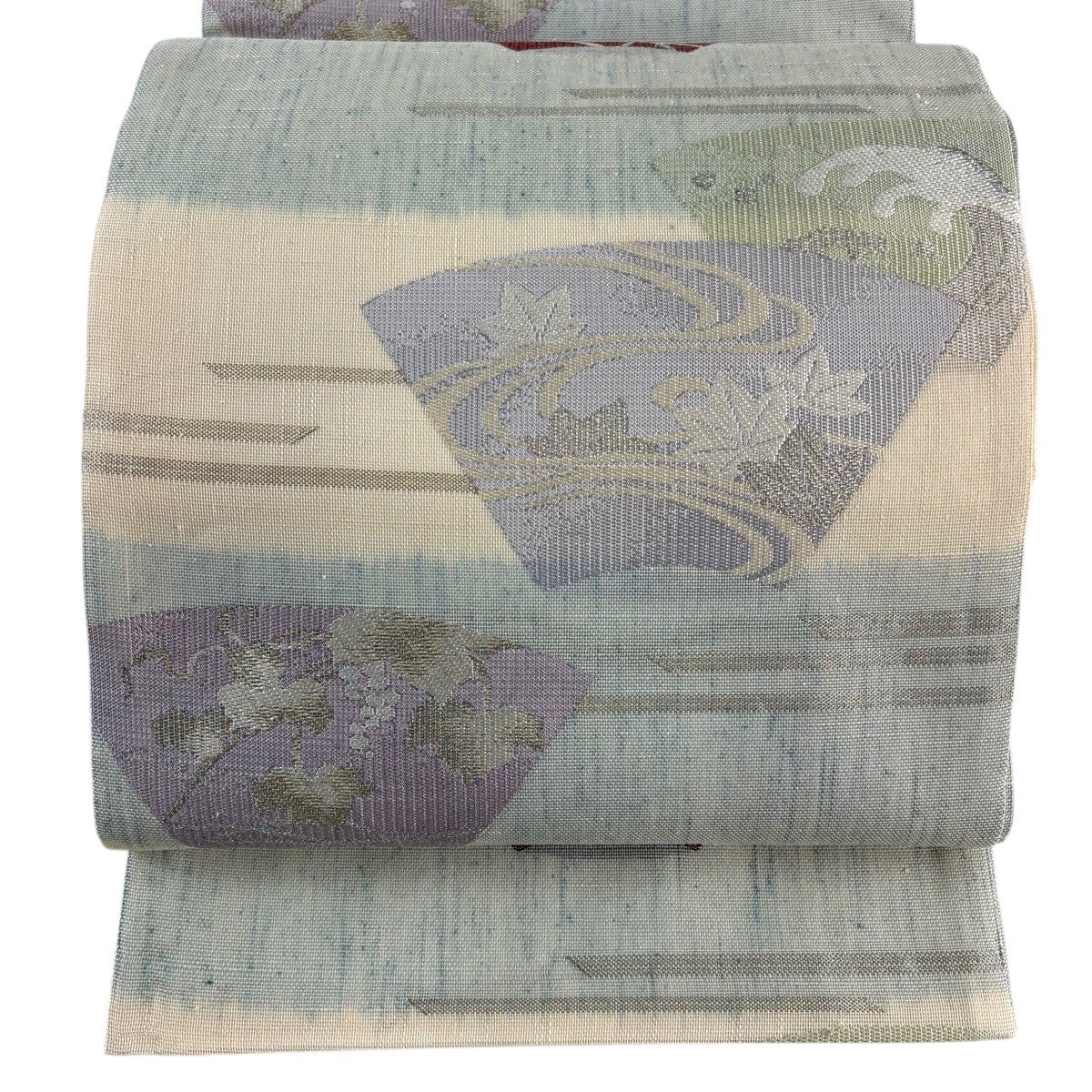 【美品】 袋帯 秀品 夏帯 菖蒲 流水 金銀糸 クリーム お太鼓柄 正絹