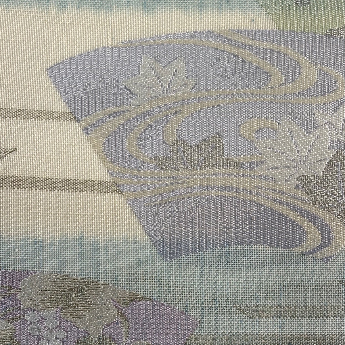 袋帯 秀品 川島織物 落款あり 夏帯 紗 雲文 葉 箔 灰紫 六通 正絹