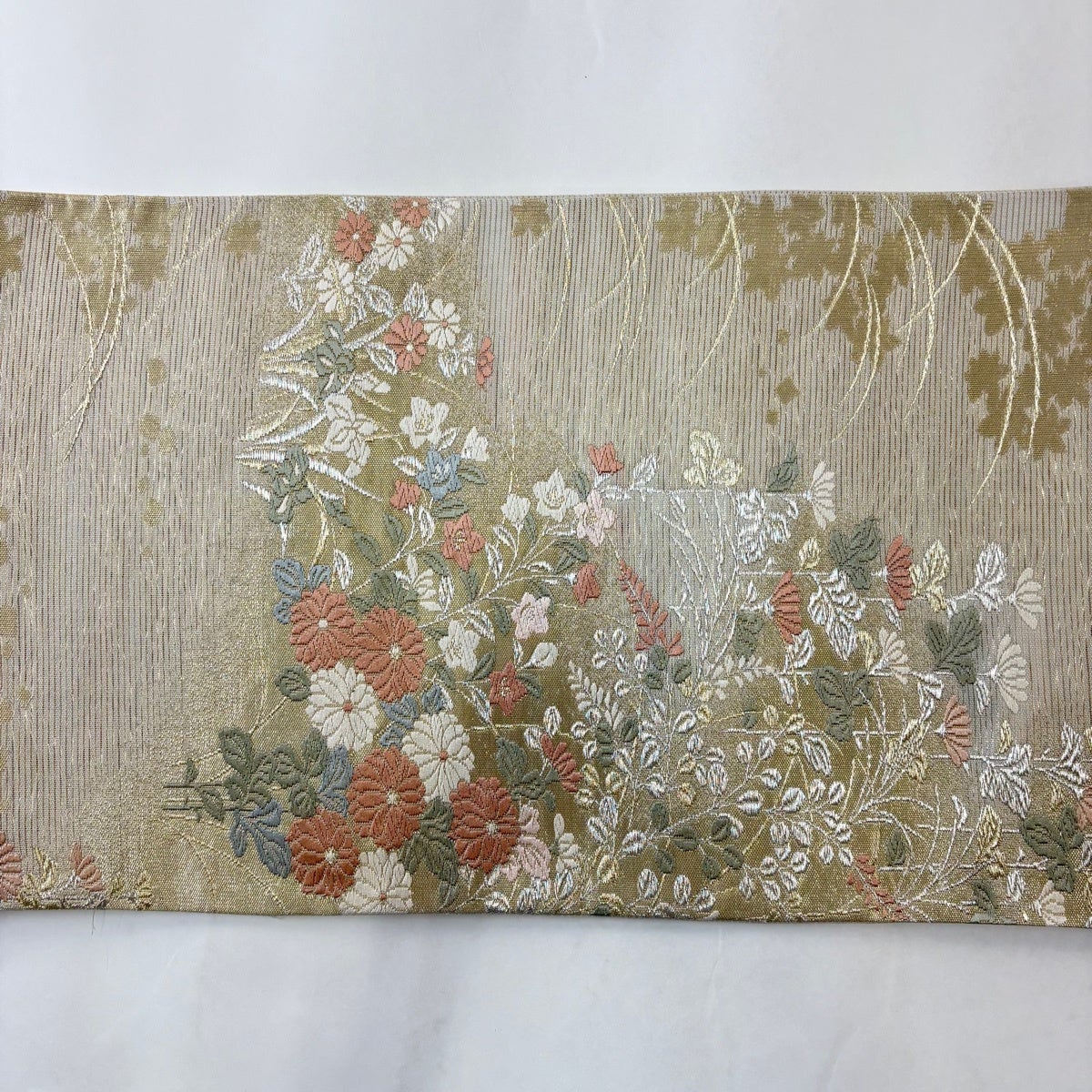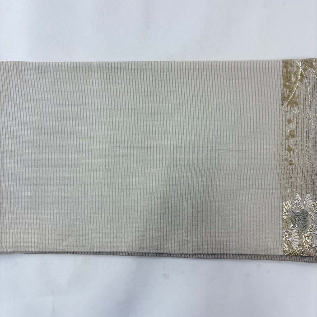 【美品】 袋帯 逸品 夏帯 草花 金銀糸 ベージュ お太鼓柄 正絹