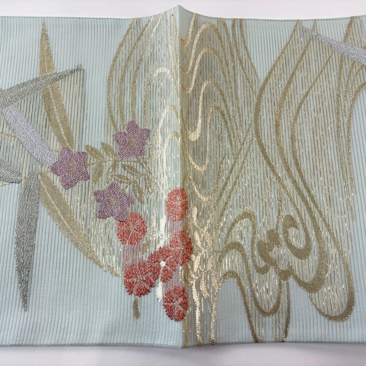 袋帯 秀品 夏帯 紗 桔梗 流水 金銀糸 箔 クリーム お太鼓柄 正絹