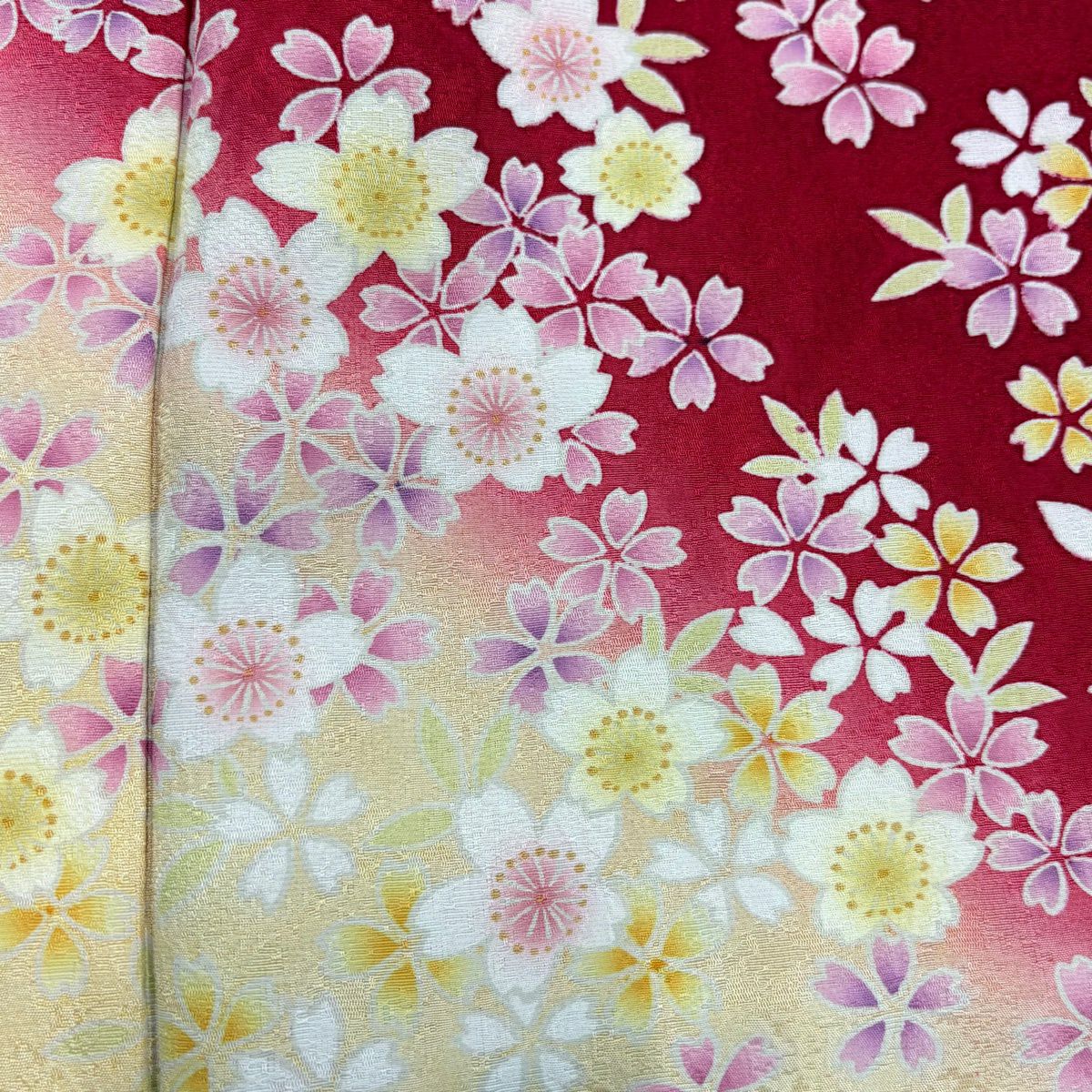 【美品】 振袖 身丈165cm 裄丈62cm S 袷 桜 花びら 染め分け ぼかし 赤 正絹 名品