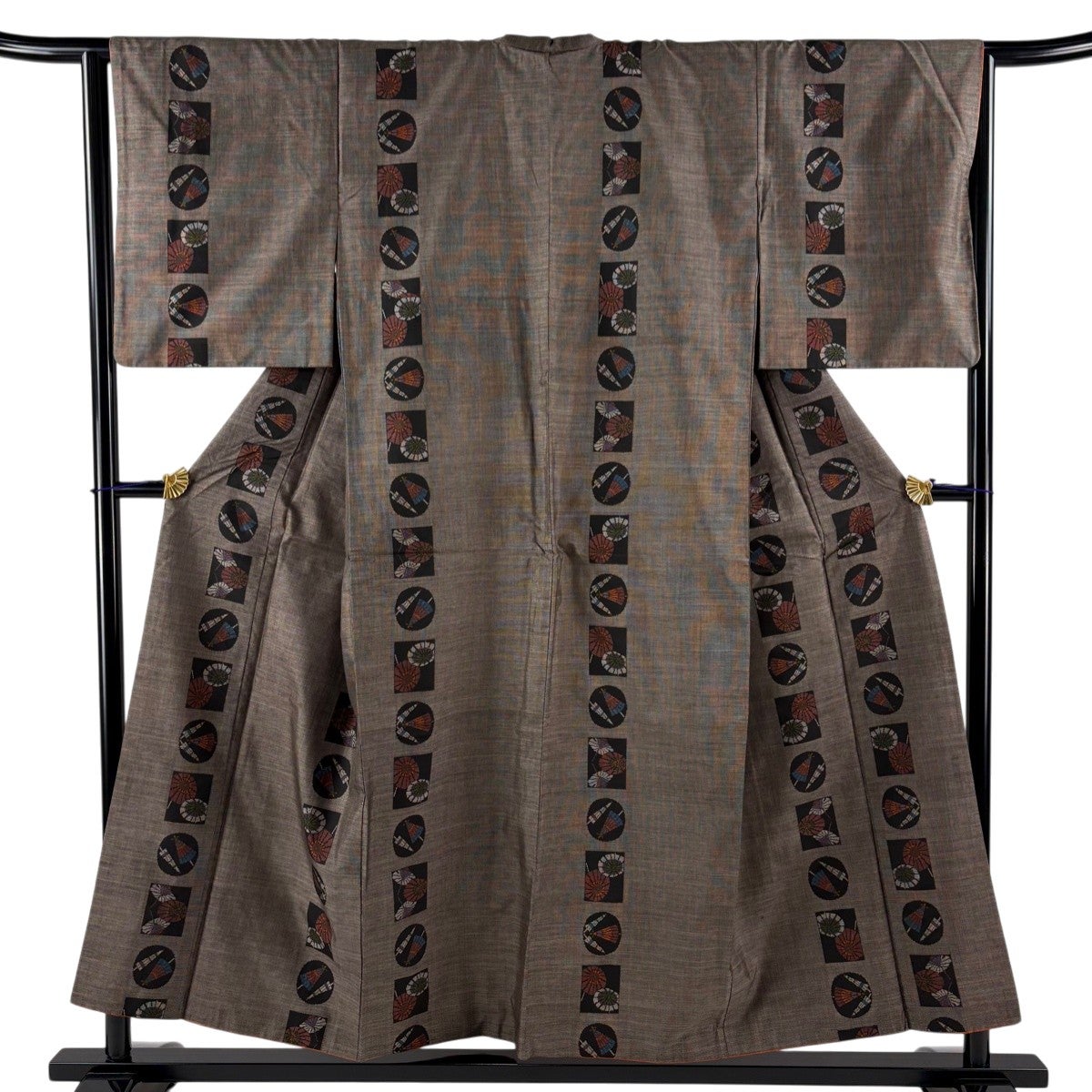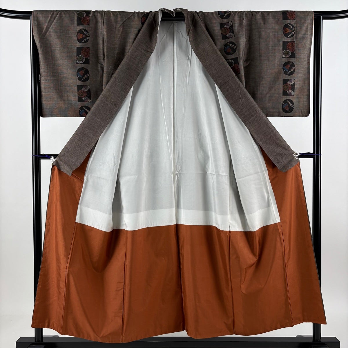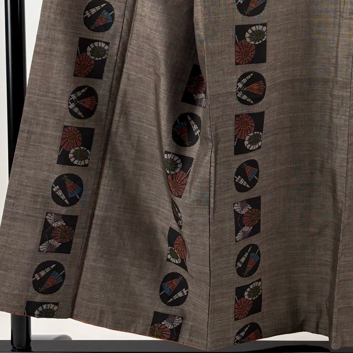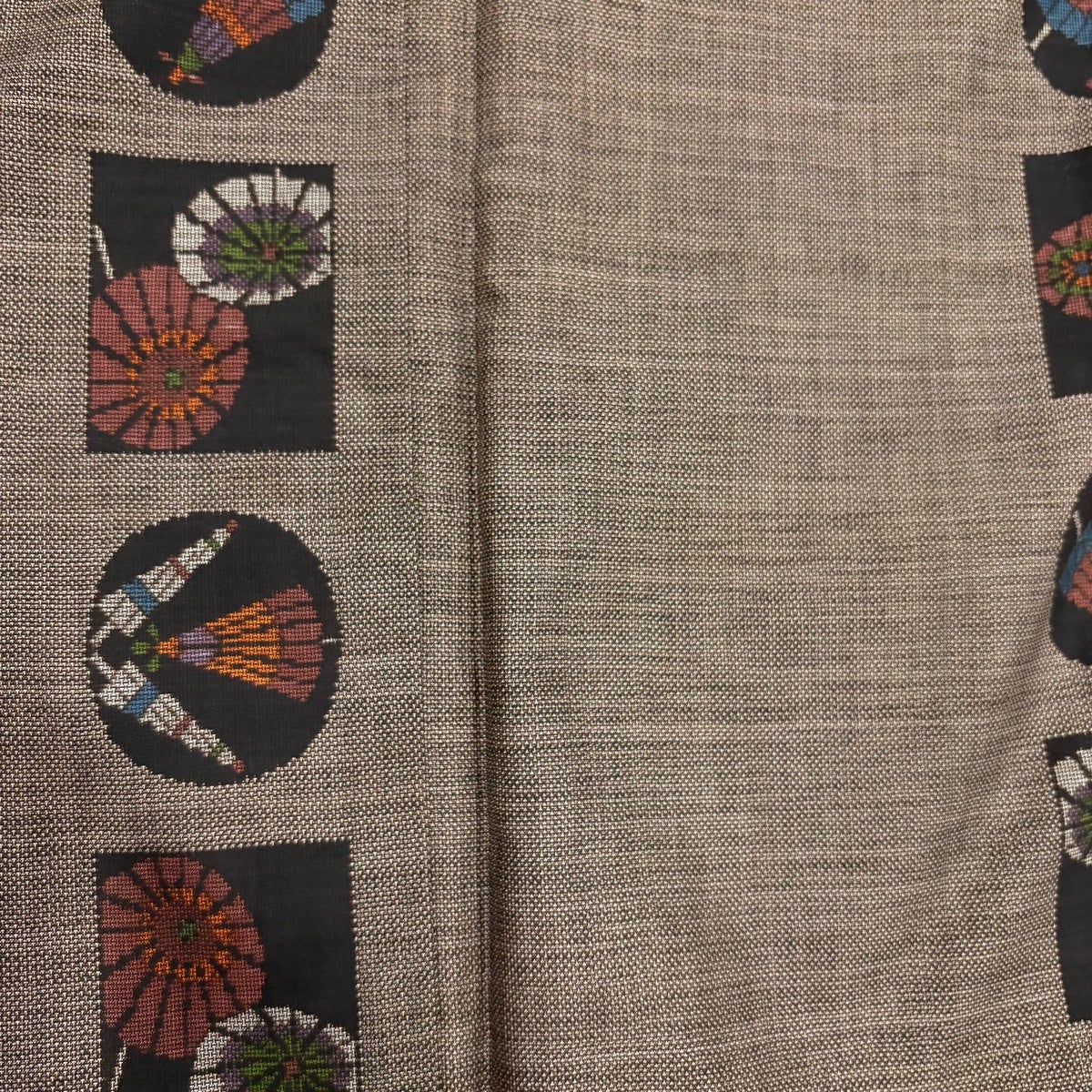 紬 身丈154cm 裄丈64cm M 袷 番傘 焦茶色 正絹 秀品
