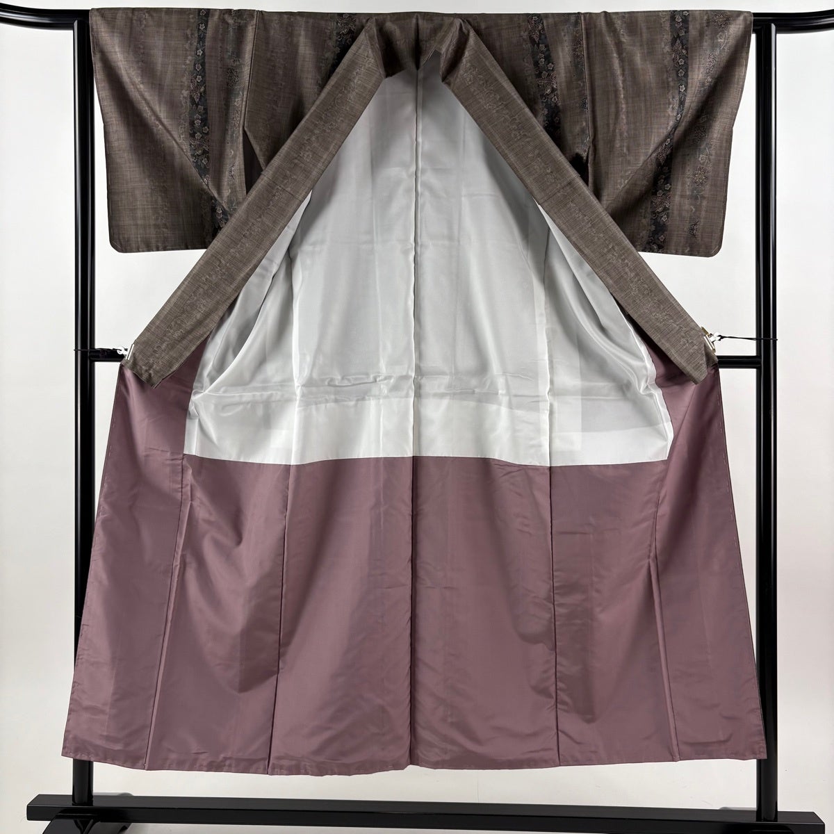 色無地 身丈151cm 裄丈61.5cm S 袷 地紋 薄茶色 正絹 優品