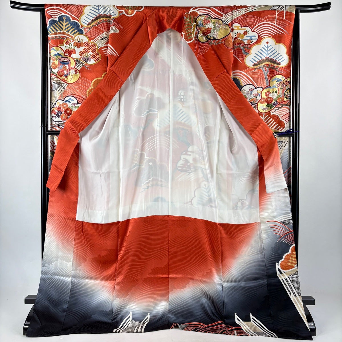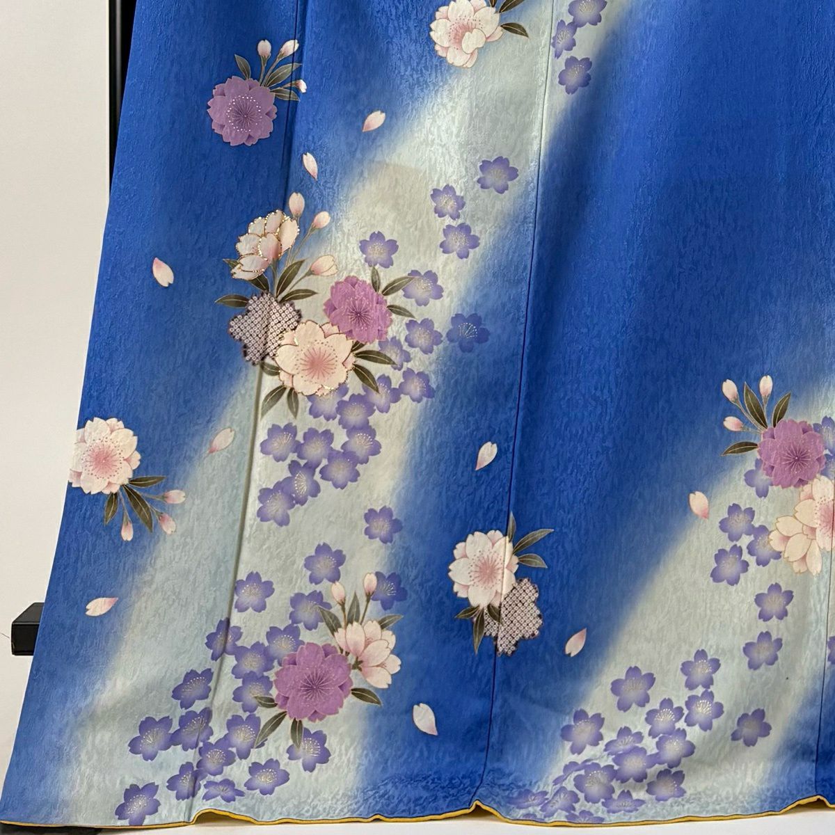 振袖 身丈164.5cm 裄丈65cm M 袷 桜 金彩 金糸 青 正絹 秀品