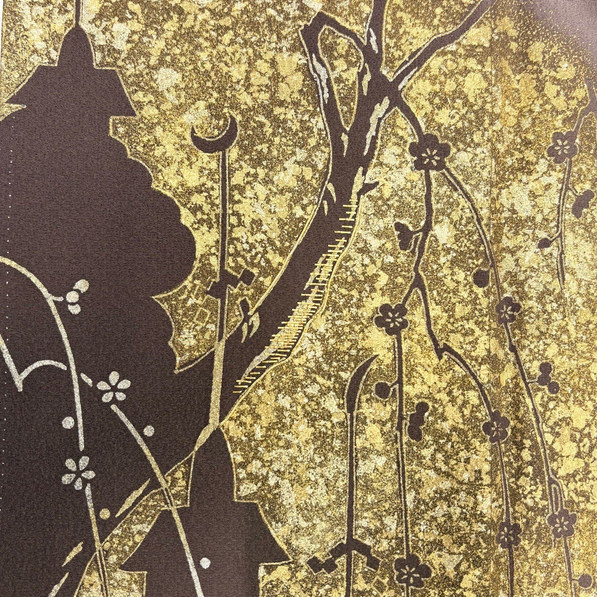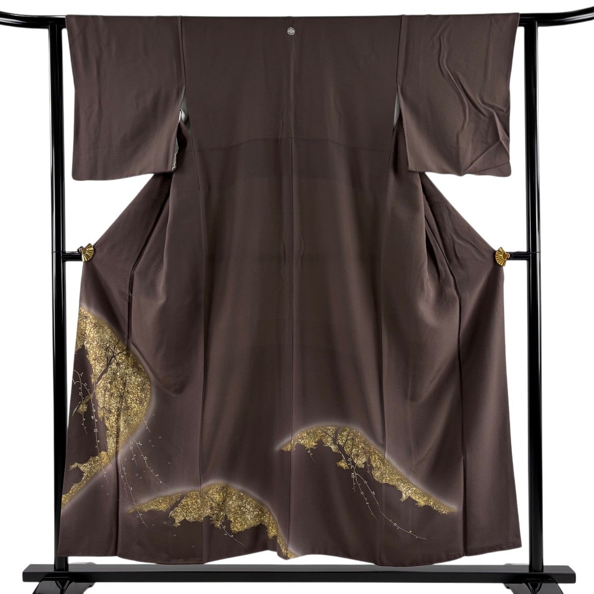 【美品】 色留袖 身丈156cm 裄丈63cm S 袷 建物 樹木 金銀彩 灰茶 正絹 優品 一つ紋