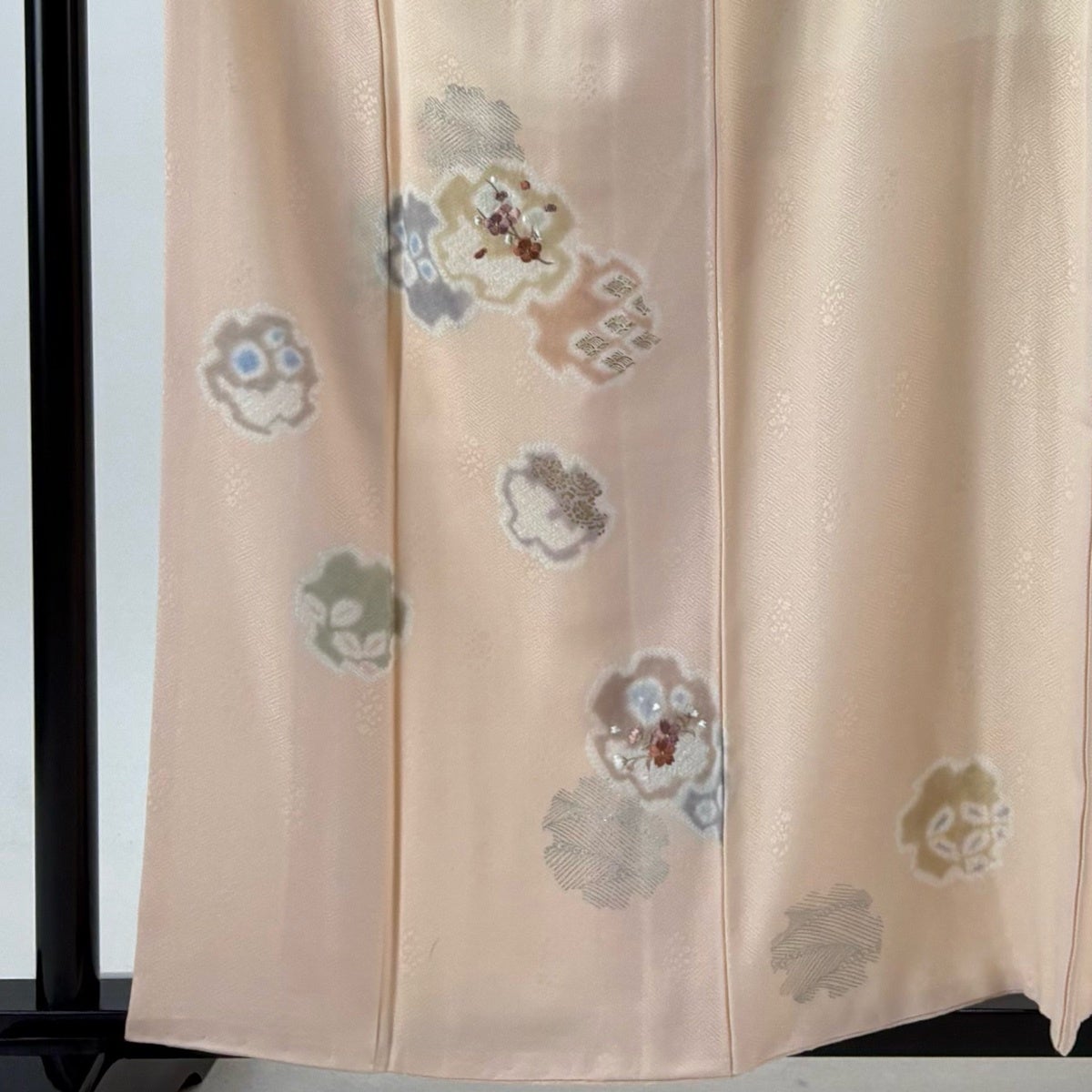 訪問着 身丈168cm 裄丈67cm M 袷 辻が花柄 金銀彩 ぼかし サーモンピンク 正絹 秀品