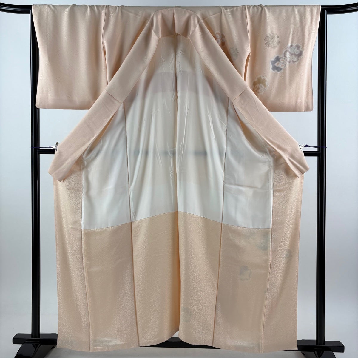 訪問着 身丈157.5cm 裄丈67cm M 袷 牡丹 松竹梅 金糸 ぼかし 薄ピンク 正絹 名品