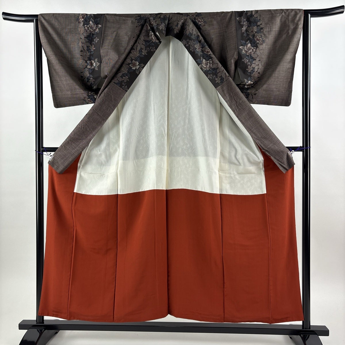 【美品】 紬 身丈164cm 裄丈65cm M 袷 花 焦茶色 正絹 秀品