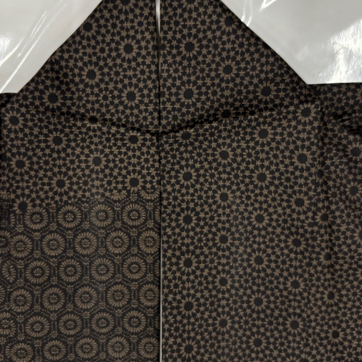 紬 身丈162.5cm 裄丈63cm S 袷 幾何学模様 焦茶色 正絹 名品