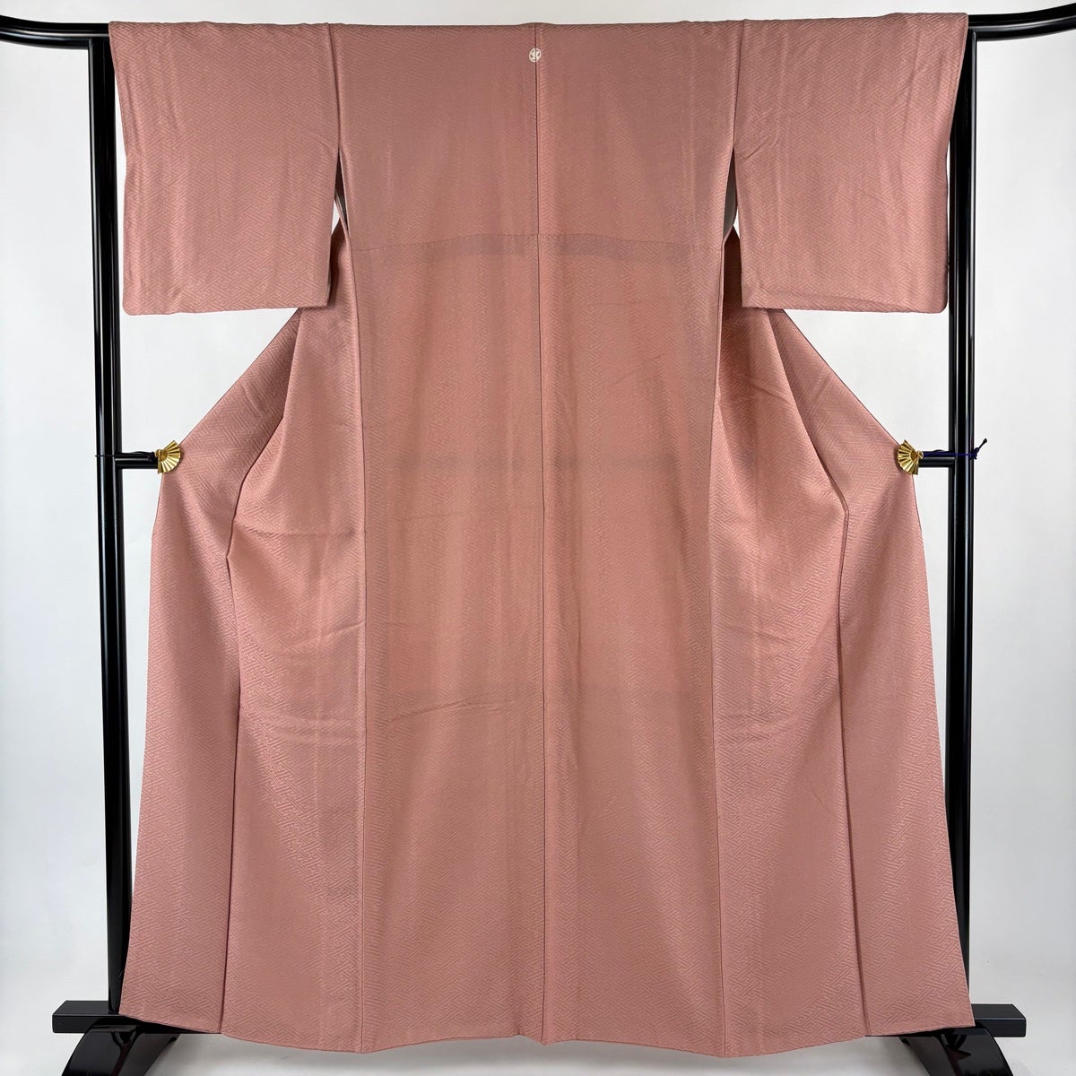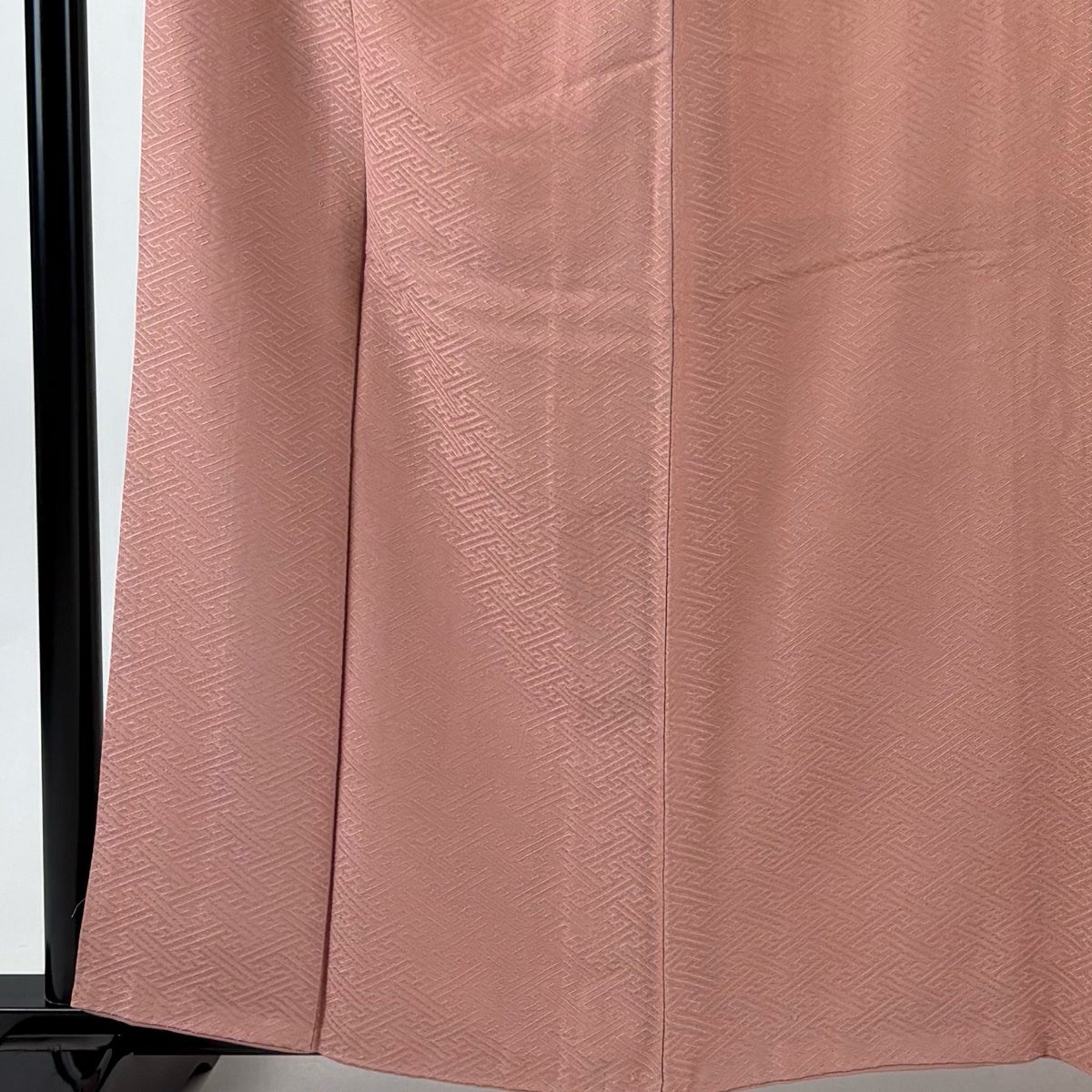 結城紬 身丈161cm 裄丈64cm M 袷 本場結城紬 バチ衿 証紙あり 源氏車 熨斗 抹茶色 正絹 逸品