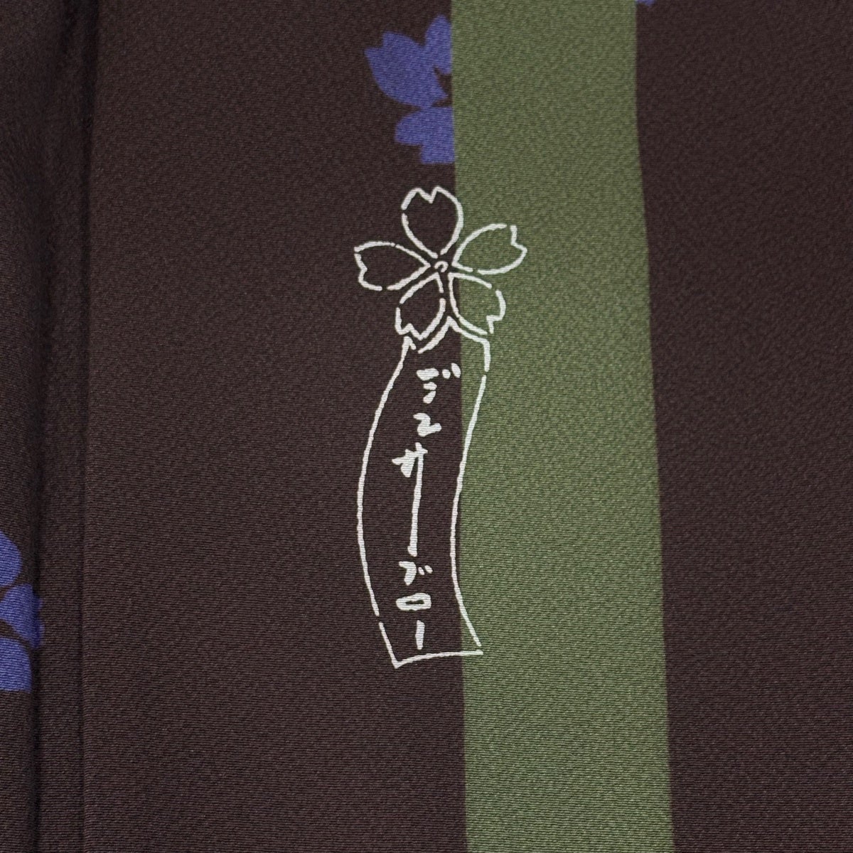 【美品】 大島紬 身丈156cm 裄丈65cm M 袷 純泥染 証紙あり 草花 幾何学 焦茶色 正絹 逸品