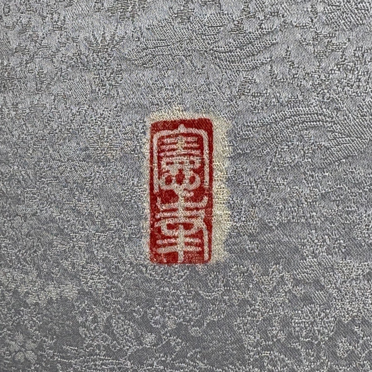 訪問着 身丈155cm 裄丈61.5cm S 袷 四代目上野眞 落款あり 枝梅 流水 金糸 灰色 正絹 逸品