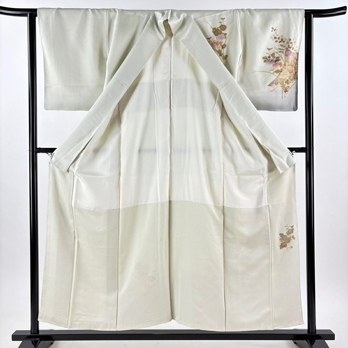 色留袖 身丈162.5cm 裄丈63cm S 袷 落款あり 天の橋立 松 ぼかし 薄緑 正絹 秀品 一つ紋