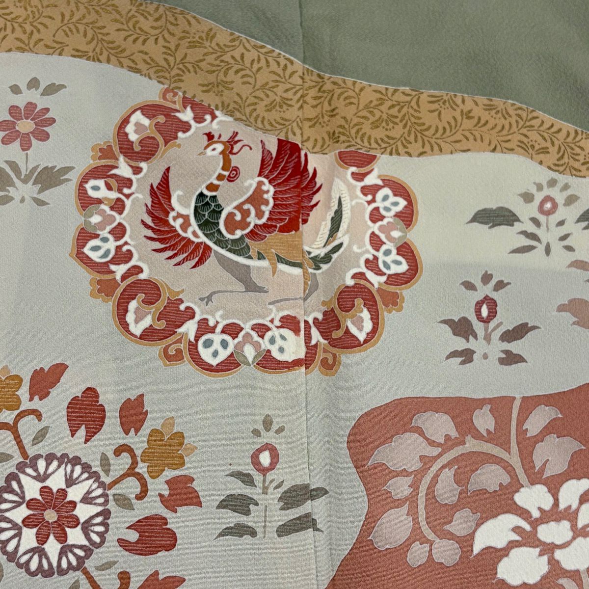 【美品】 振袖 身丈158.5cm 裄丈66.5cm M 袷 御所車 花鳥 金銀彩 絞り クリーム 正絹 秀品