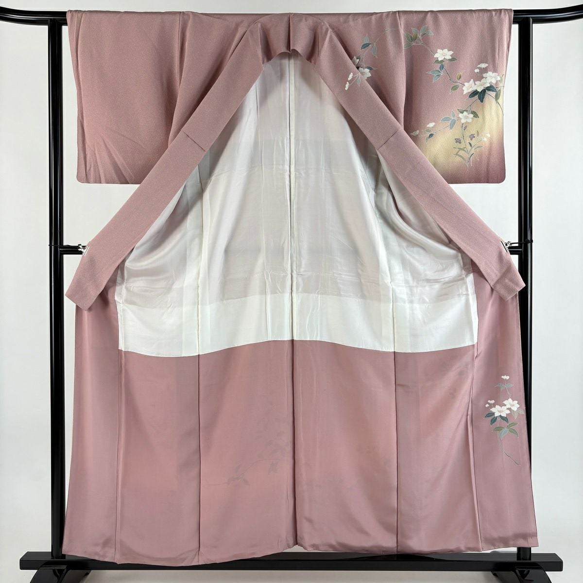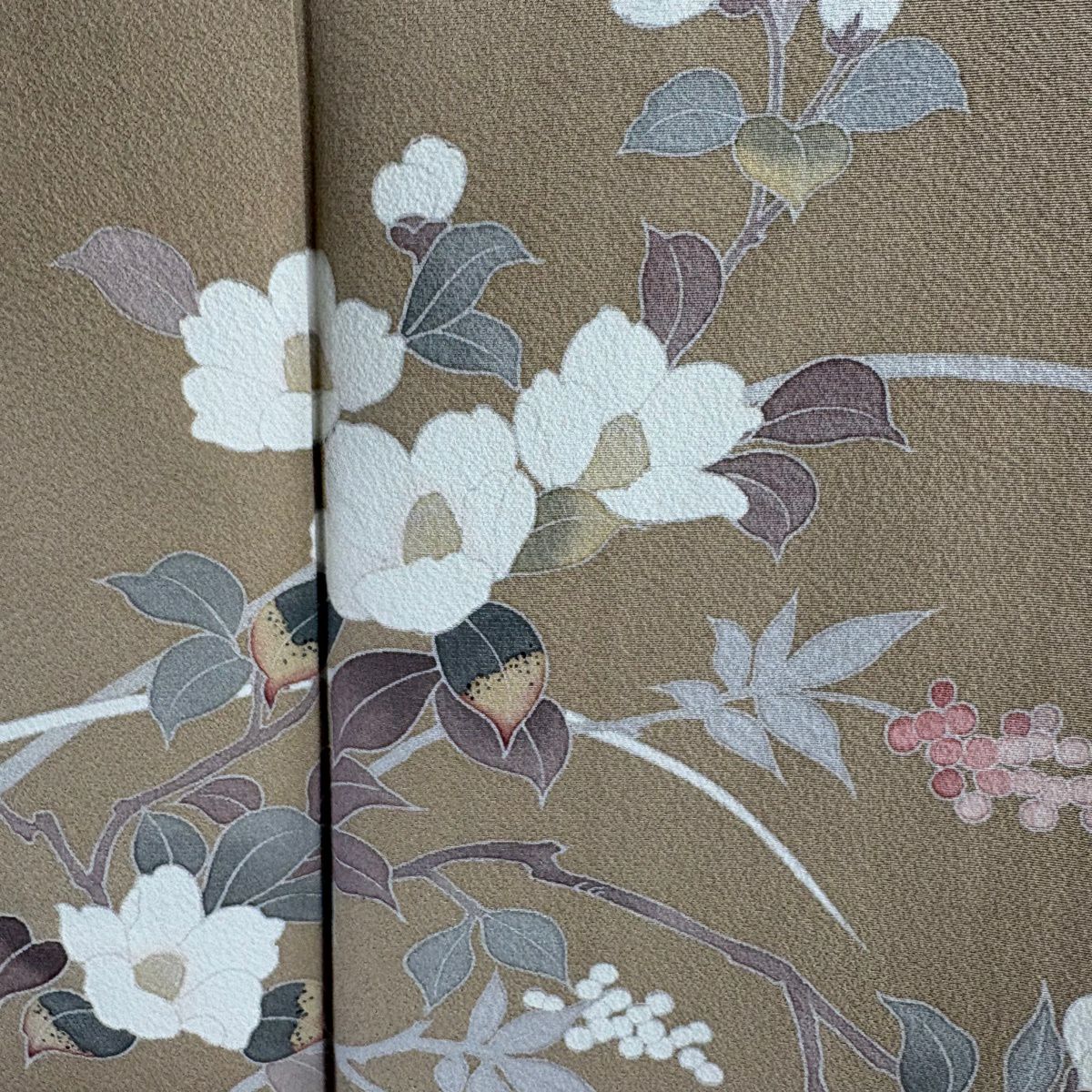 訪問着 身丈158cm 裄丈63cm S 袷 落款あり 枝梅 椿 染め分け ぼかし 薄ピンク 正絹 名品