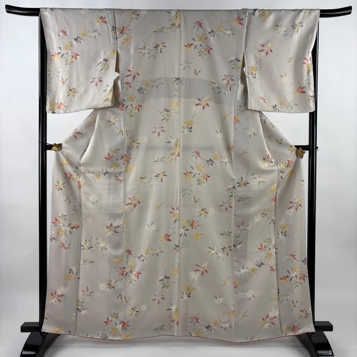 色無地 身丈155cm 裄丈62cm S 袷 地紋 灰色 正絹 秀品 一つ紋