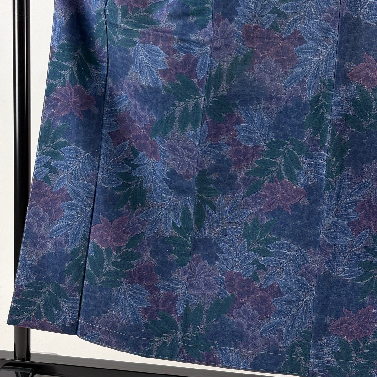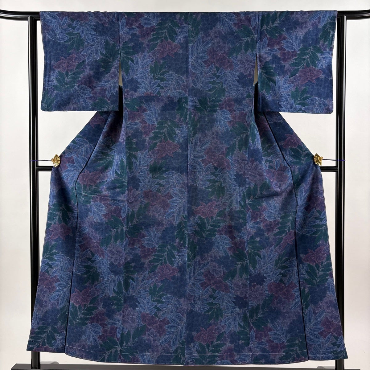 小紋 身丈156cm 裄丈62cm S 袷 花 葉柄 絞り 紺色 正絹 名品