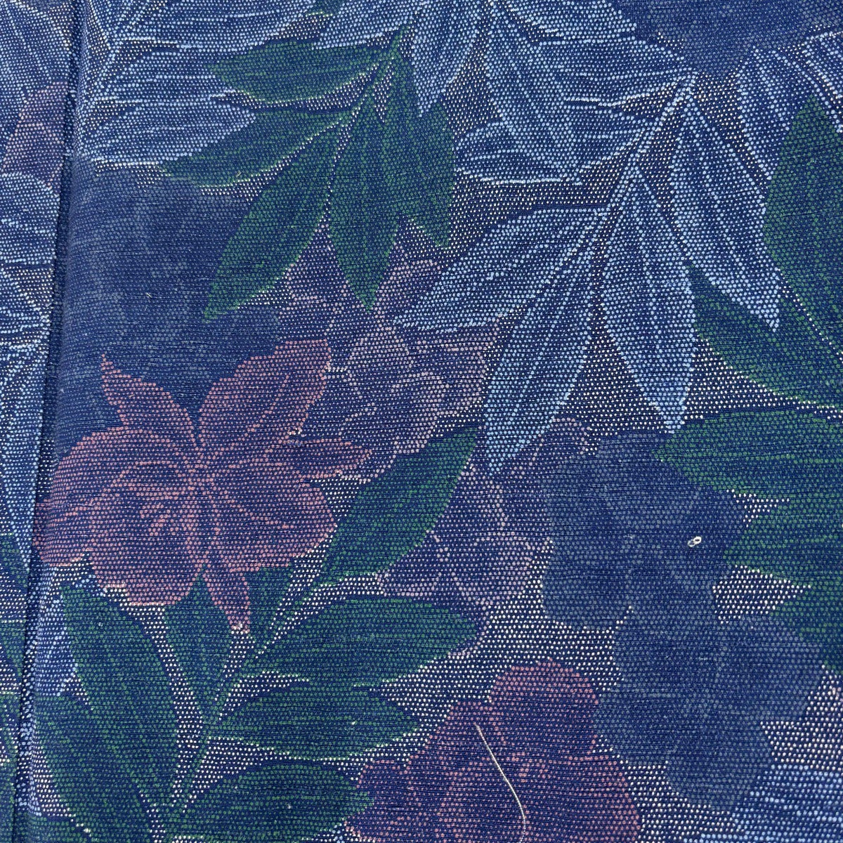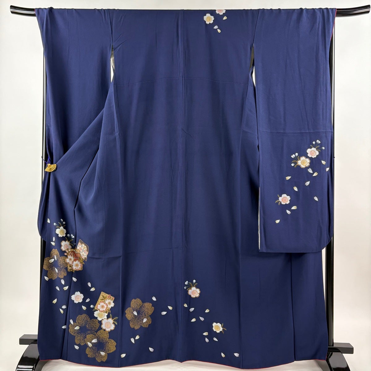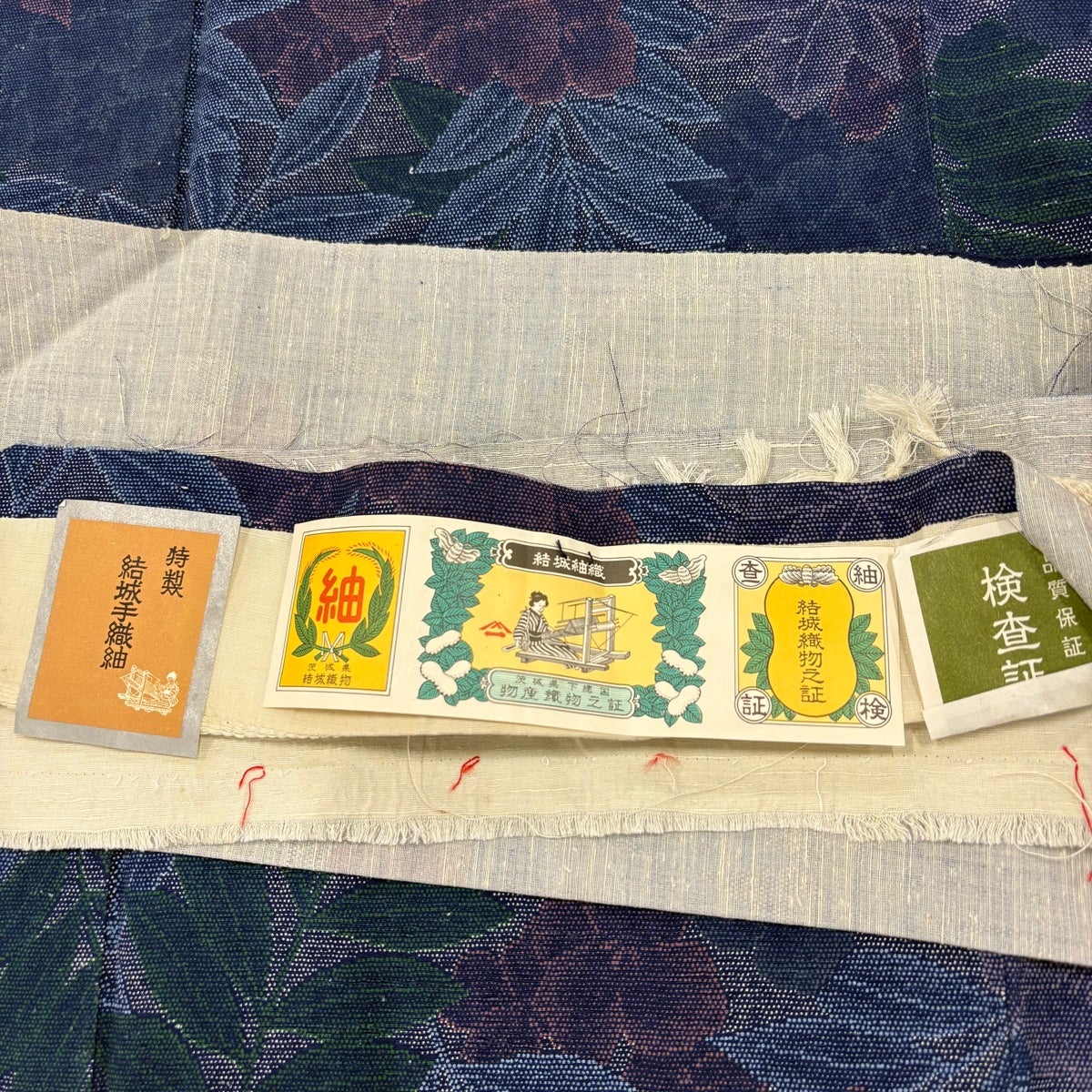 紬 身丈162cm 裄丈64cm M 袷 ますいわ屋 草花 紺色 正絹 秀品