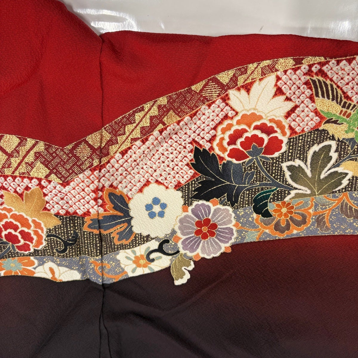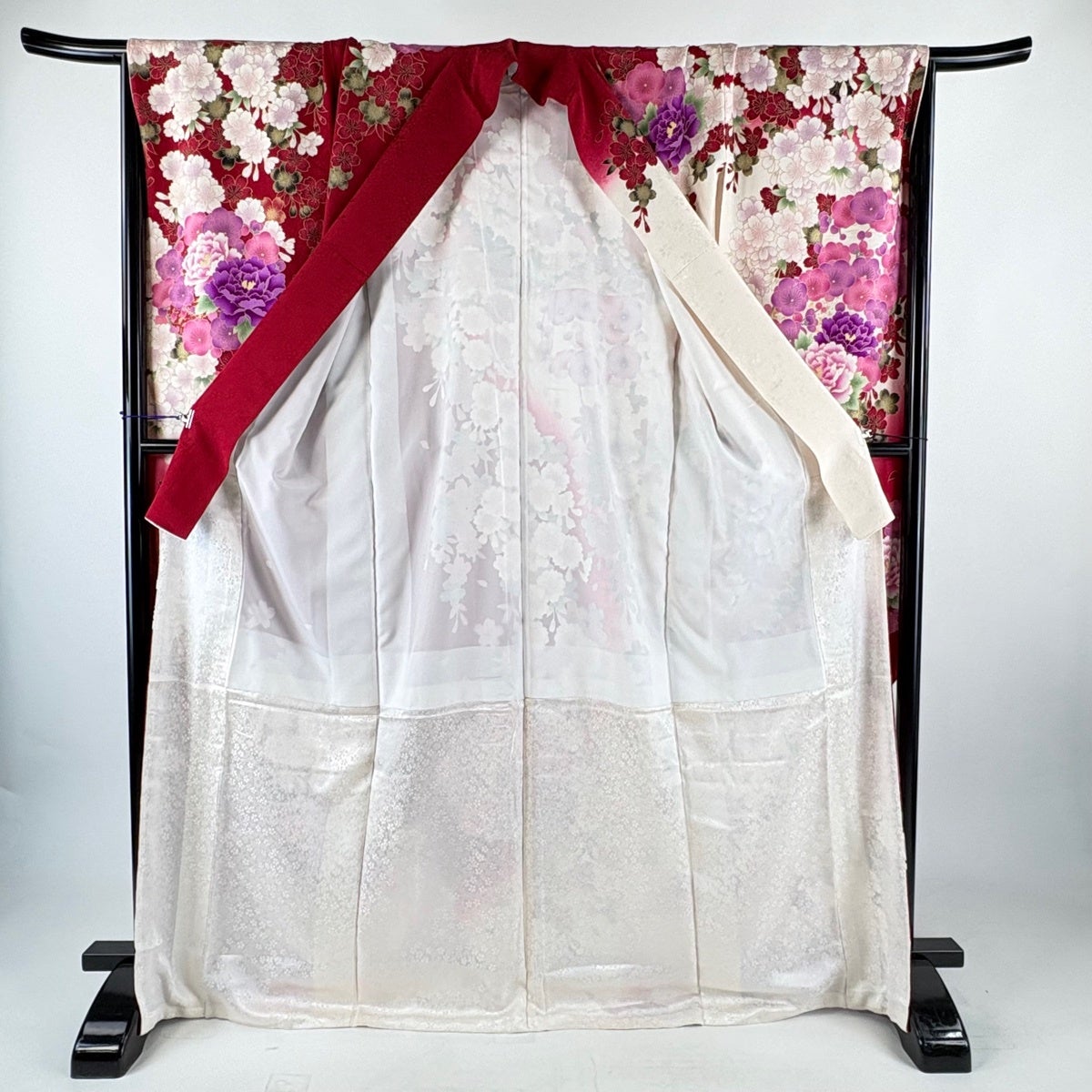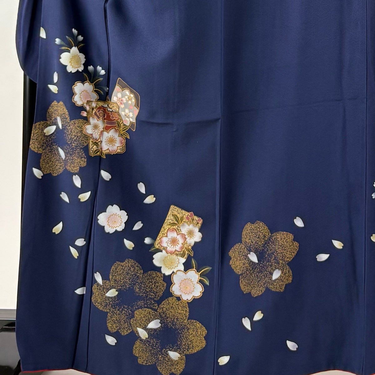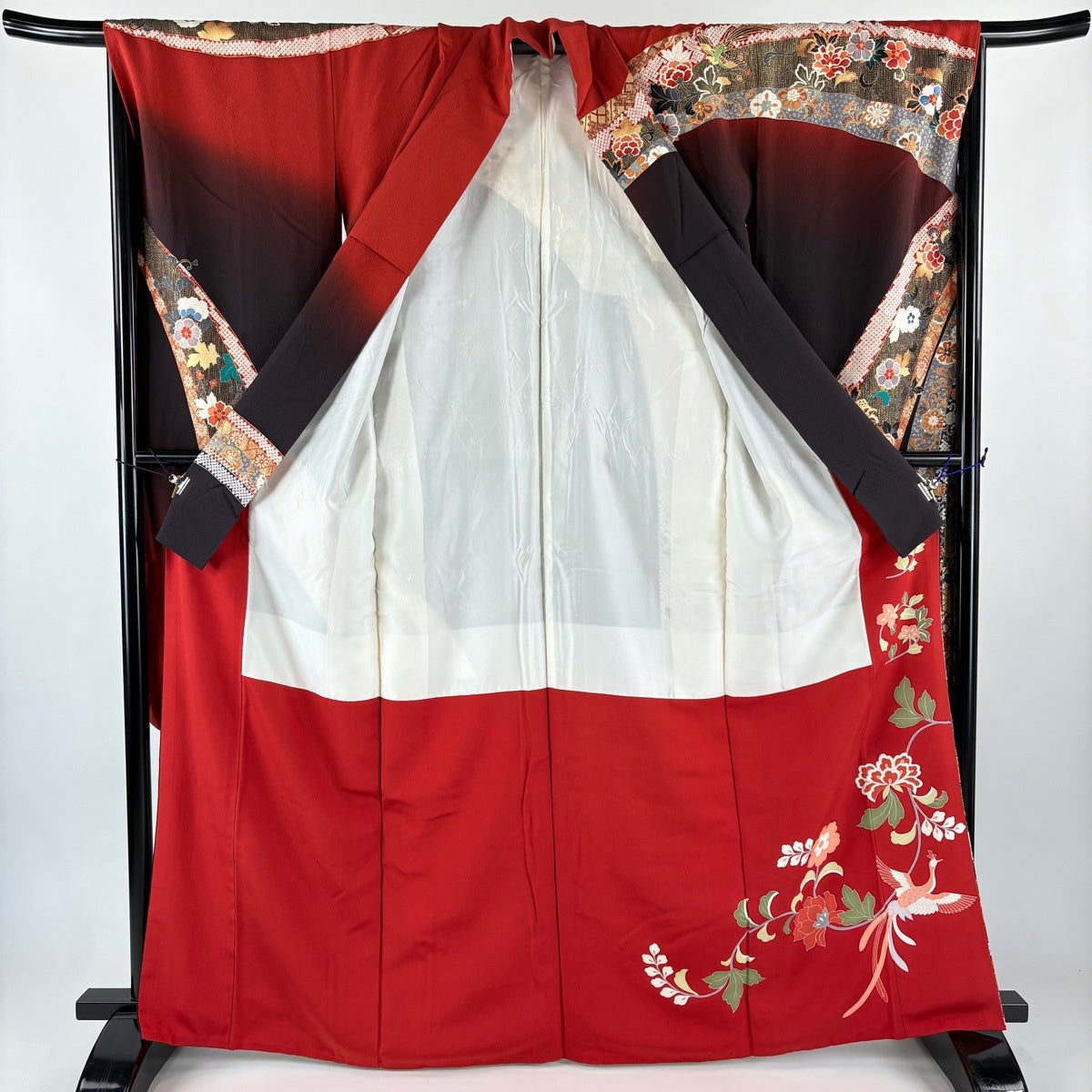 振袖 身丈165cm 裄丈70cm L 袷 桜 梅 箔 刺繍 黒 正絹 名品