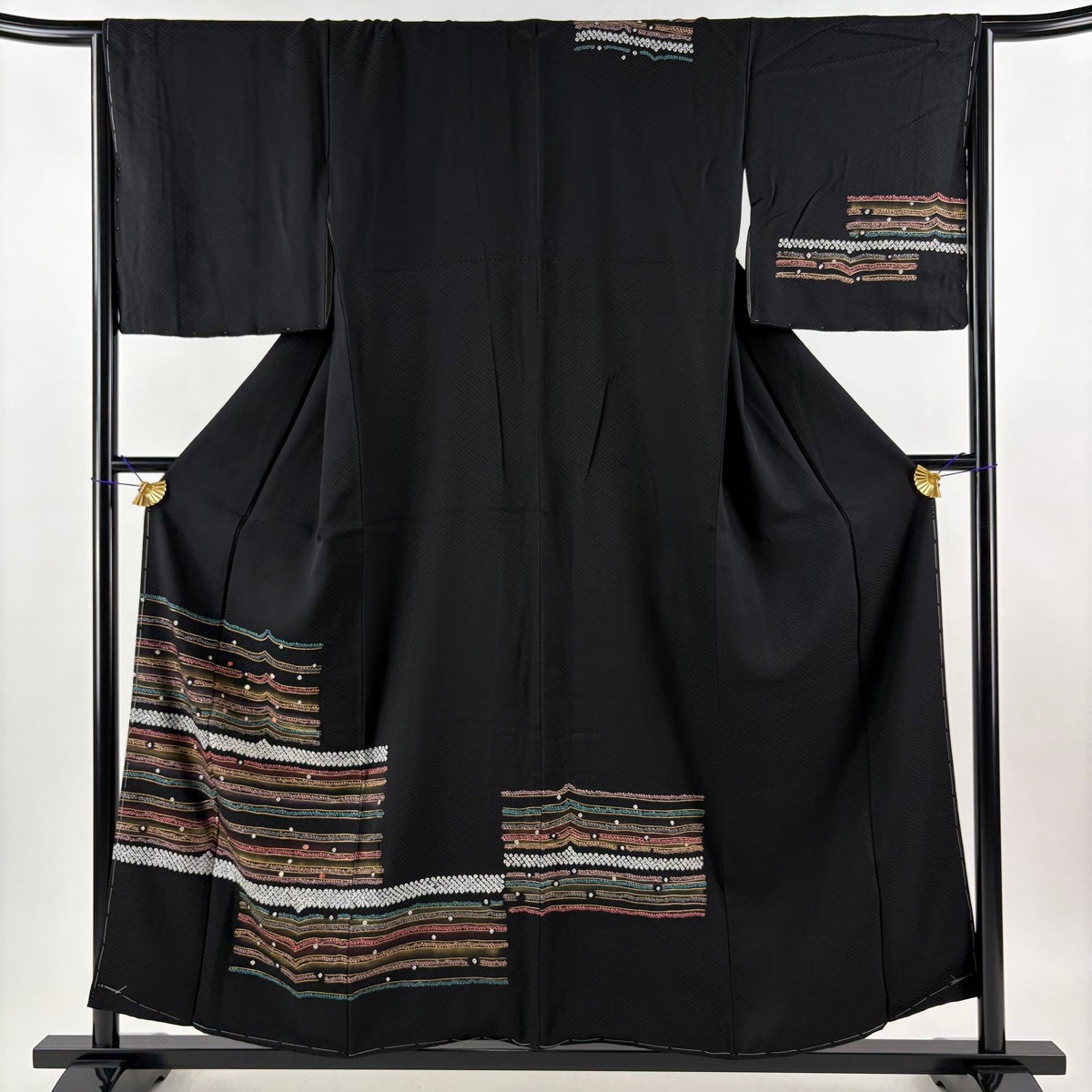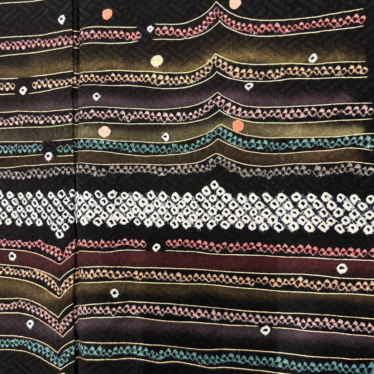 【美品】 小紋 身丈158cm 裄丈63cm S 袷 幾何学 黒 正絹 秀品
