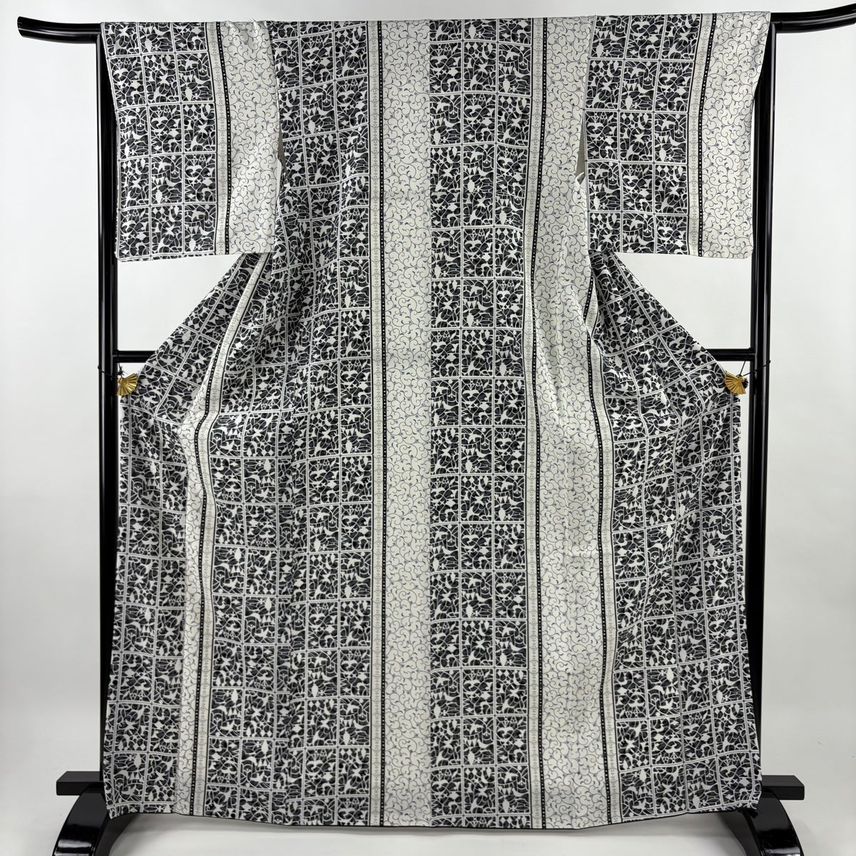 小紋 身丈164.5cm 裄丈66cm M 袷 蔦 総絞り 灰白 正絹 名品