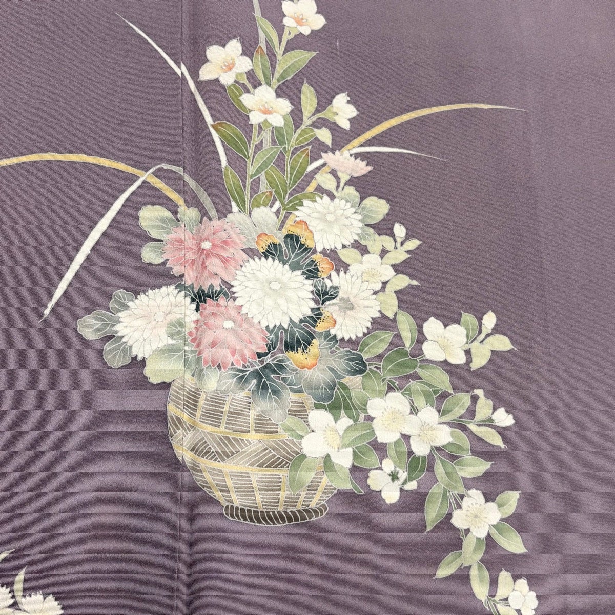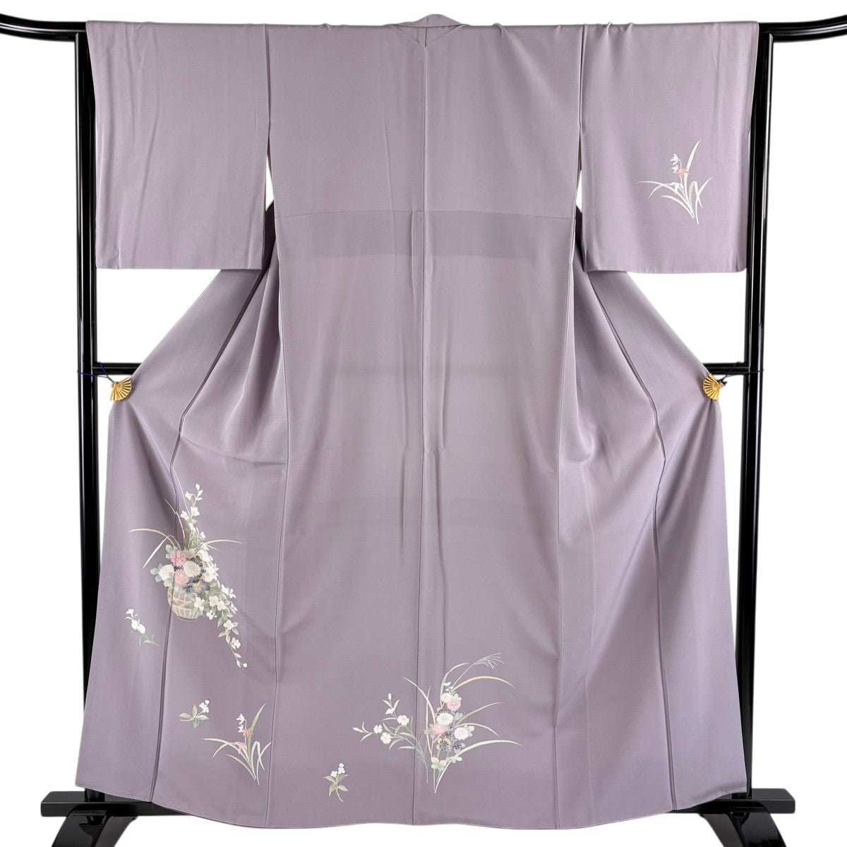 付下げ 身丈160.5cm 裄丈65cm M 袷 花籠 草花 薄紫 正絹 秀品