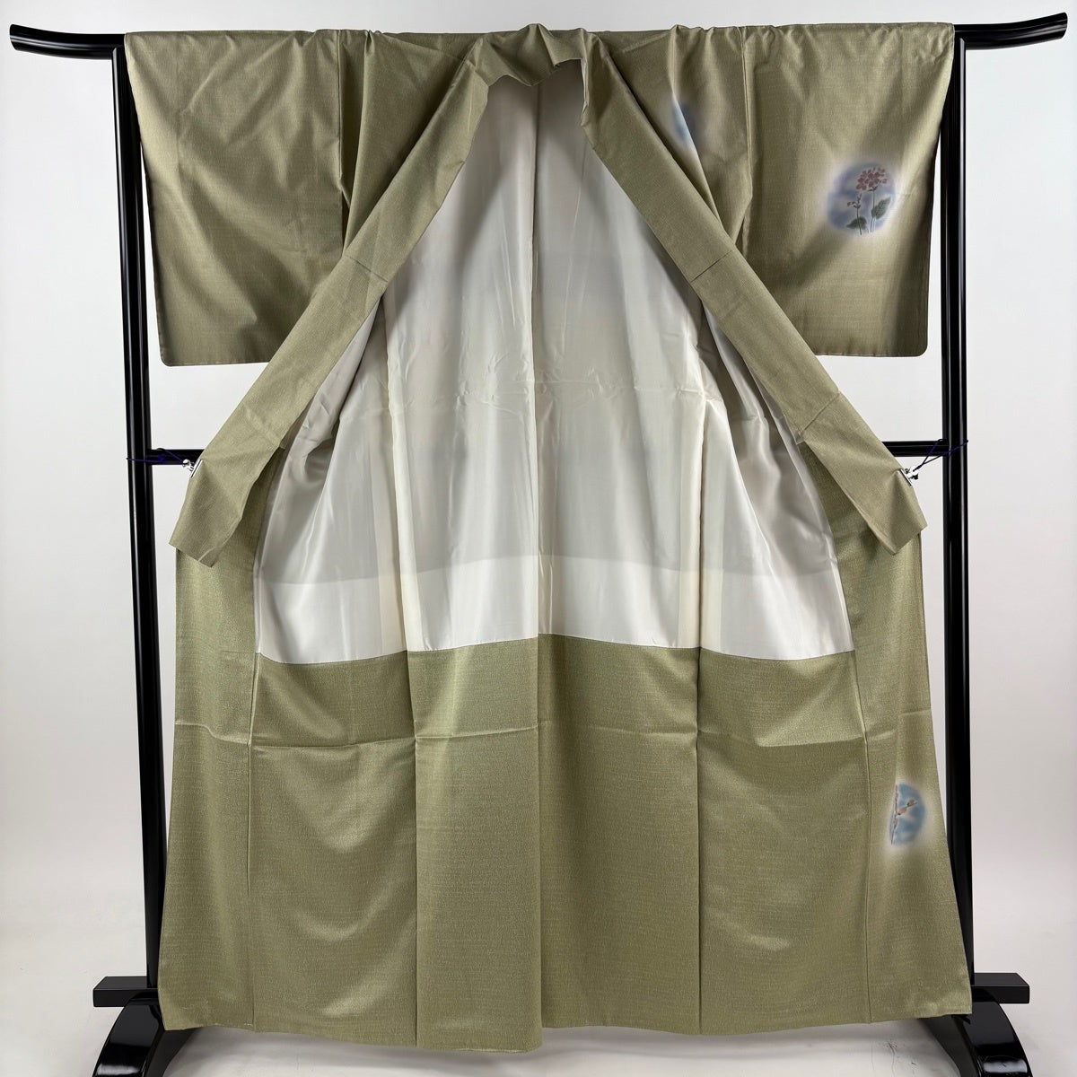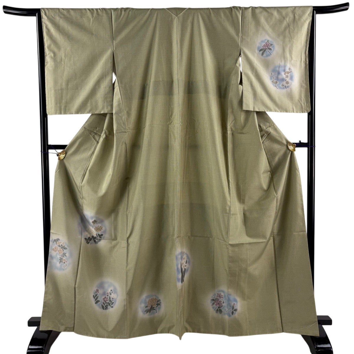 訪問着 身丈154cm 裄丈65.5cm M 袷 翠山工房 落款あり 辻が花 金彩 ぼかし 灰緑 正絹 名品