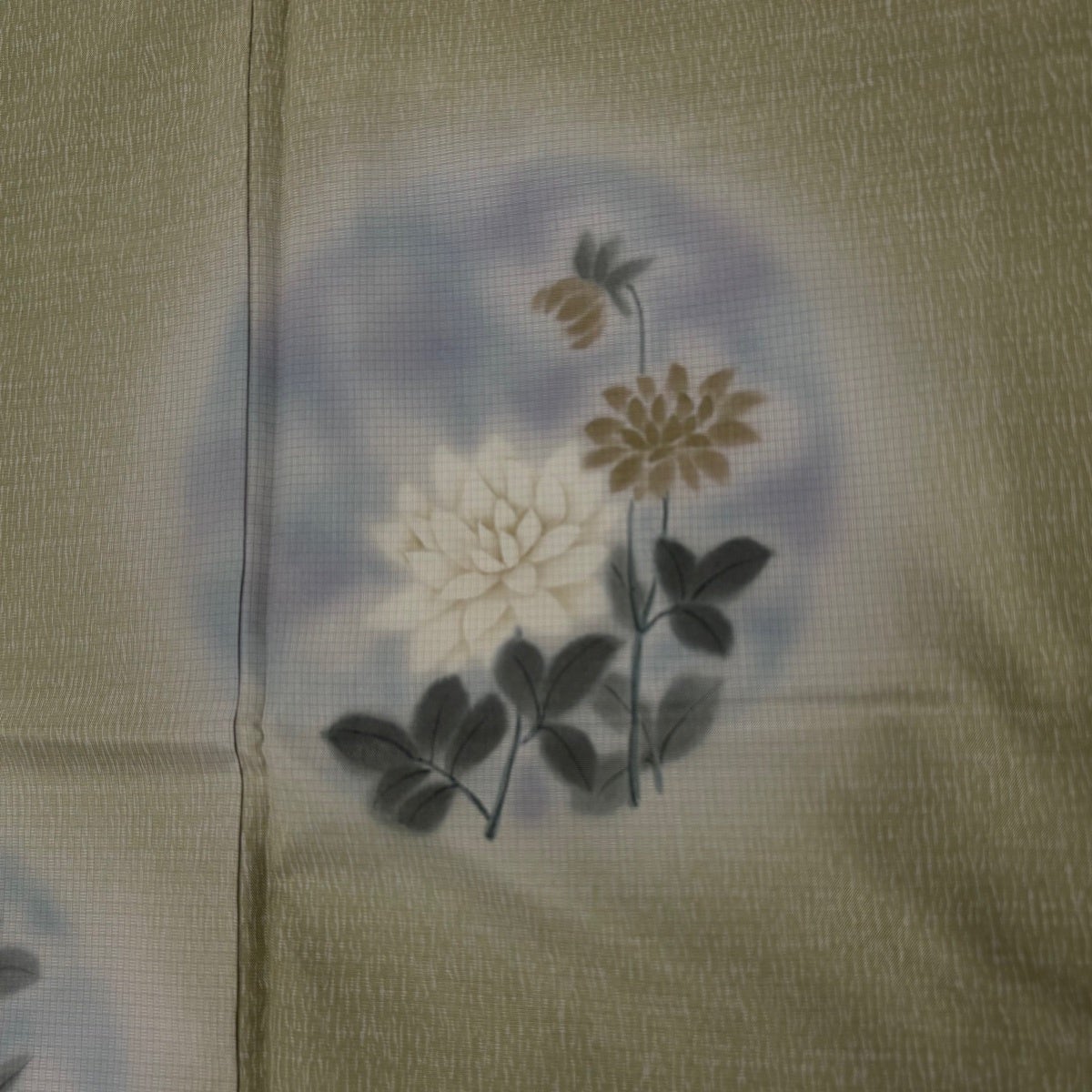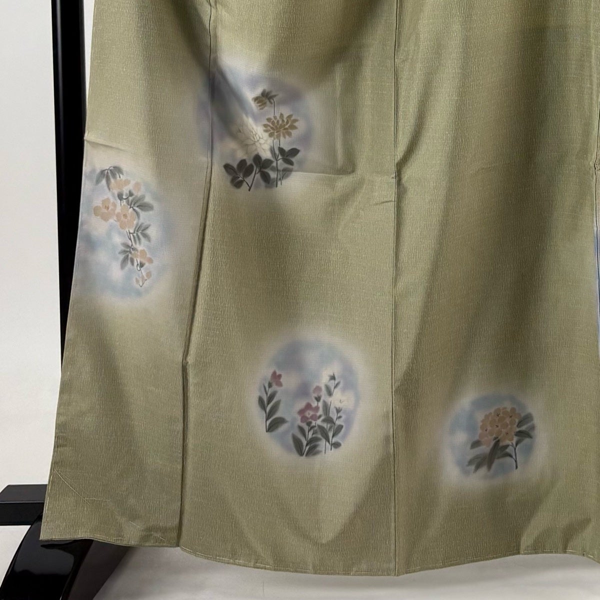 【美品】 訪問着 身丈158cm 裄丈66cm M 袷 落款あり 菊 萩 染め分け ぼかし 薄緑 正絹 秀品