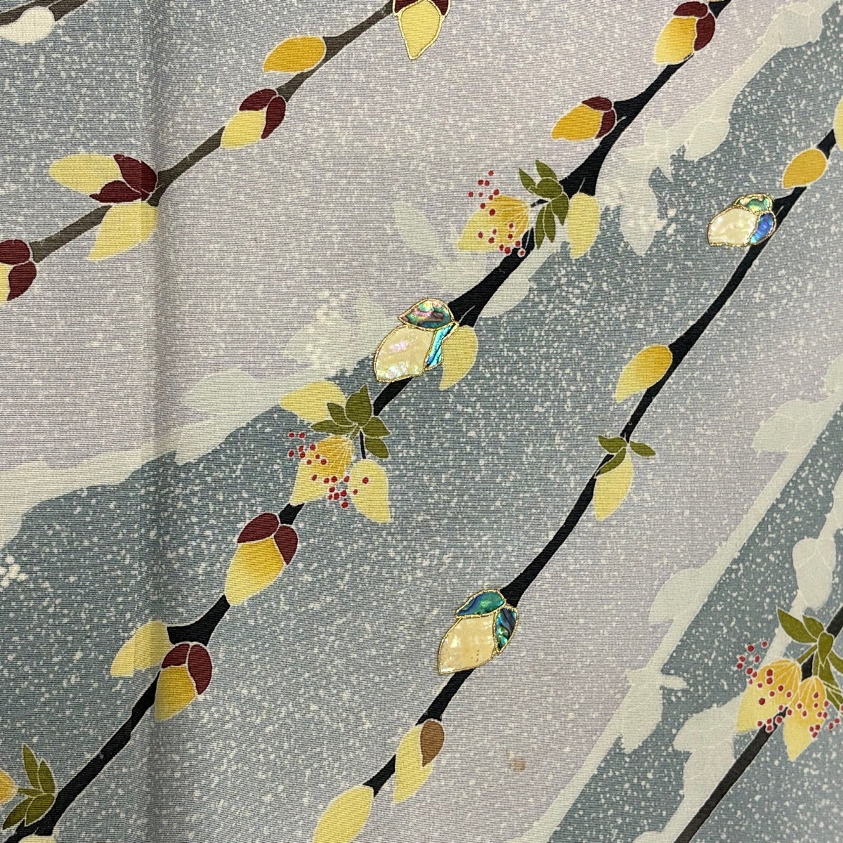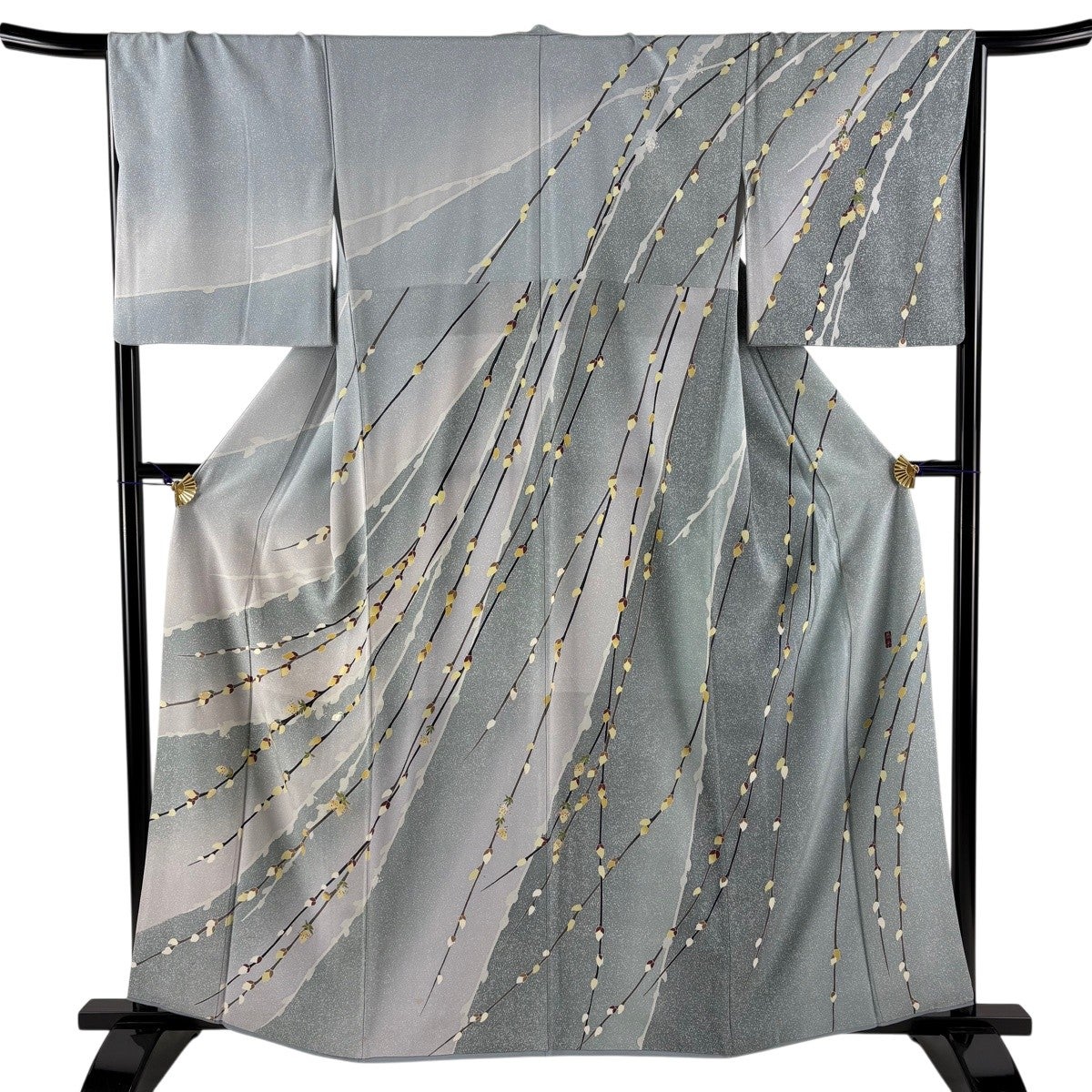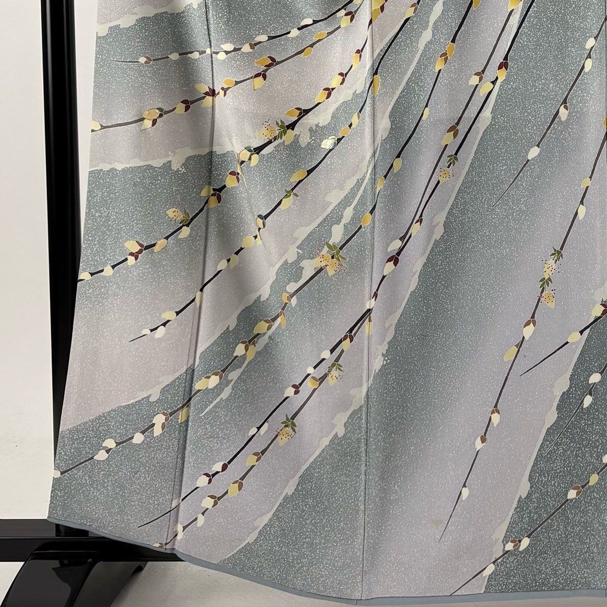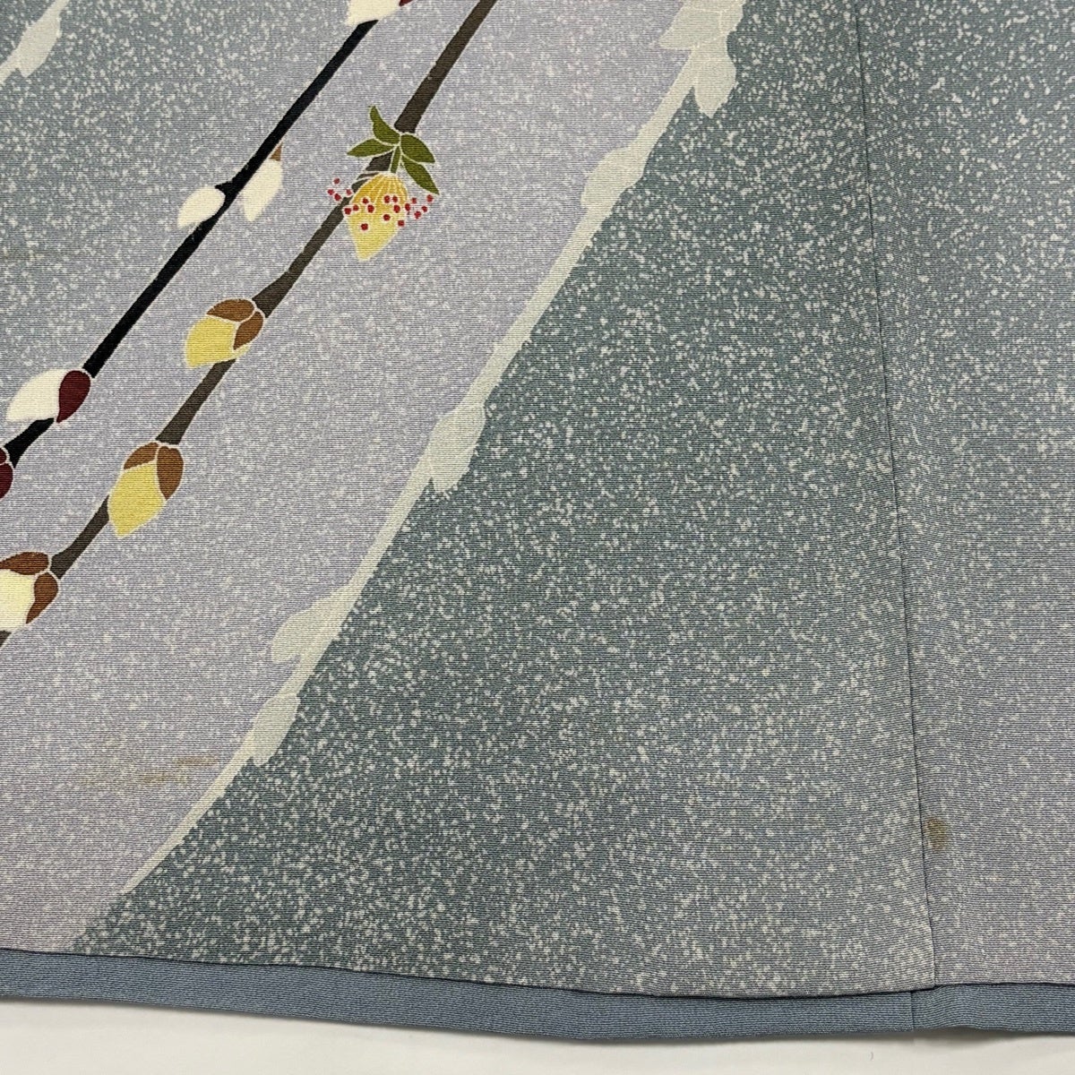 訪問着 身丈162cm 裄丈66.5cm M 袷 落款あり 枝花 シルエット 螺鈿 ぼかし 水色 正絹 秀品