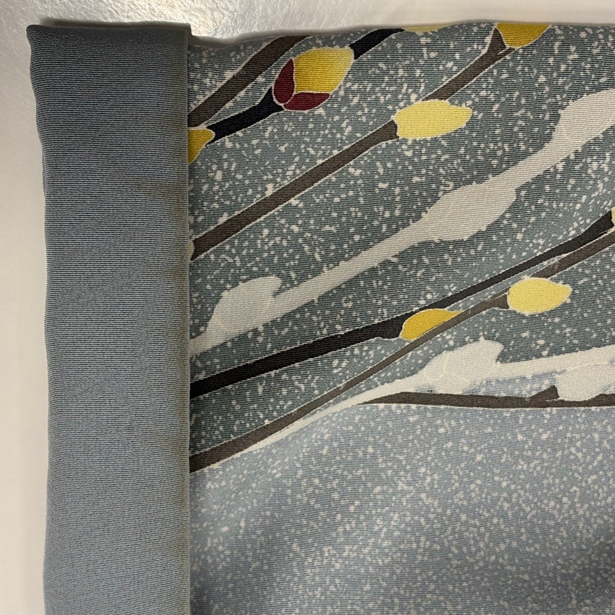 付下げ 身丈157.5cm 裄丈65cm M 袷 藤本隆士 落款あり 金閣寺 桜 螺鈿 金銀彩 灰色 正絹 逸品