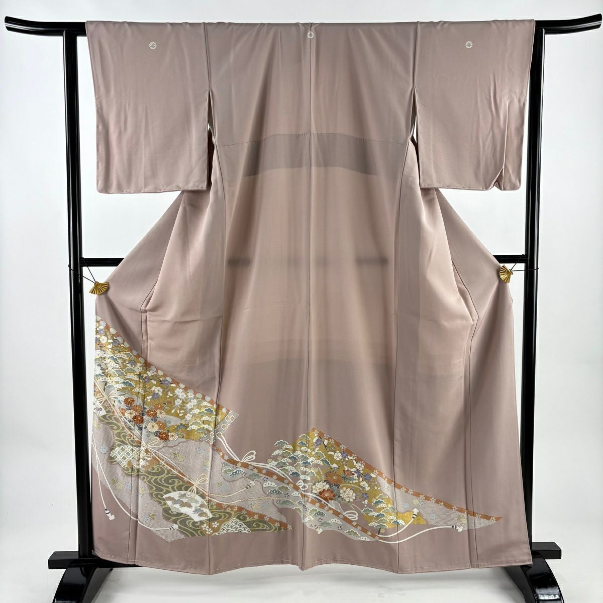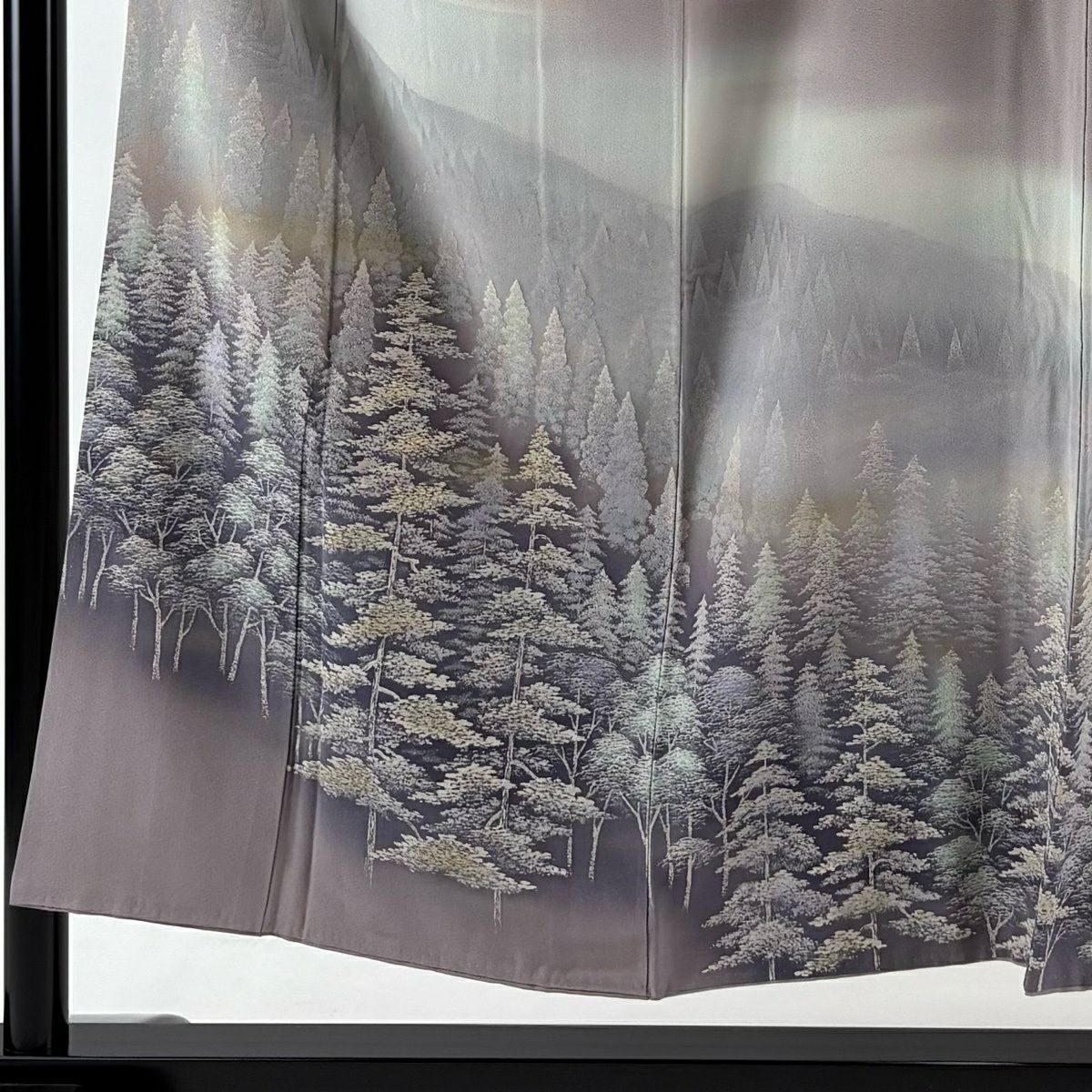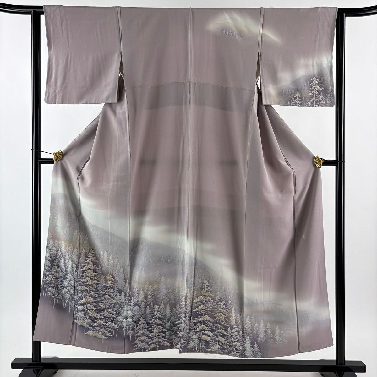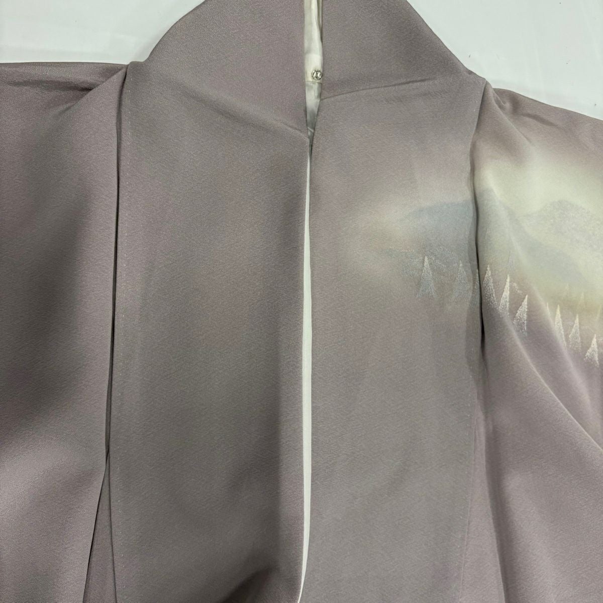 訪問着 身丈168.5cm 裄丈65.5cm M 袷 背抜き 風景 松竹梅 刺繍 金彩 灰紫 正絹 秀品 一つ紋