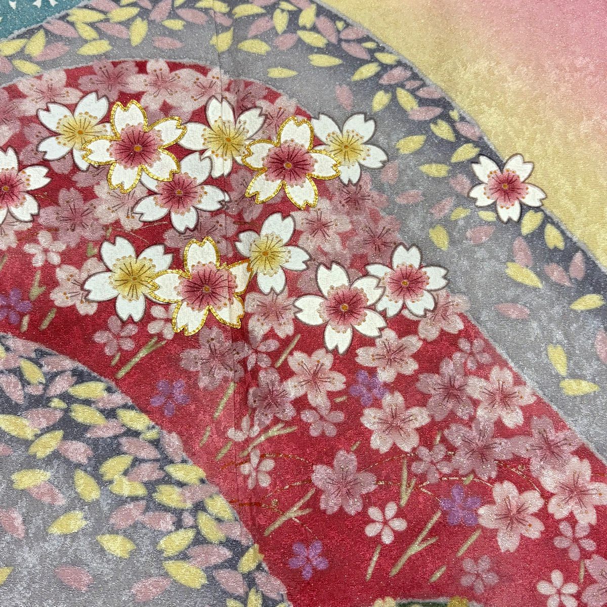 【美品】 振袖 身丈164.5cm 裄丈70cm L 袷 袋帯フルセット 桜 熨斗 金糸 金彩 赤 正絹 名品