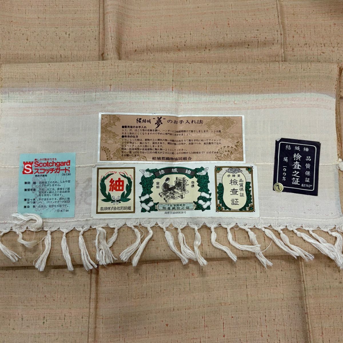 結城紬 身丈157.5cm 裄丈64cm M 袷 本場結城紬 井上商事 証紙あり 花唐草 亀甲絣 黒 正絹 逸品