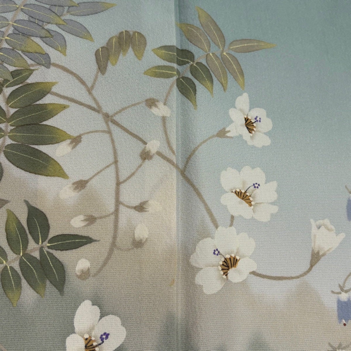 付下げ 身丈157cm 裄丈64cm M 袷 花井幸子 やまと 落款あり 桜 花びら 青灰色 正絹 名品 一つ紋