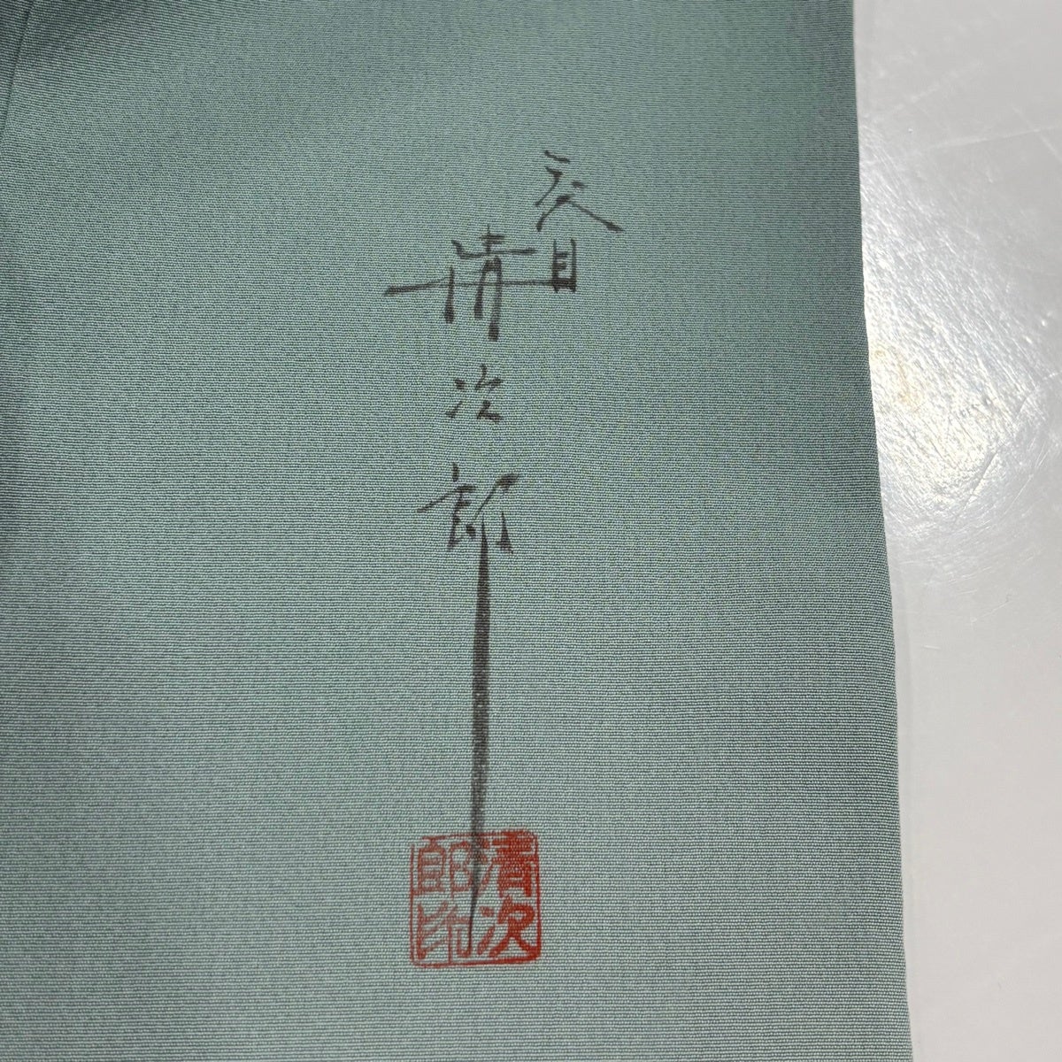 【美品】 付下げ 身丈158cm 裄丈66cm M 袷 二代目清次郎 落款あり とんぼ 草花 灰茶 正絹 秀品
