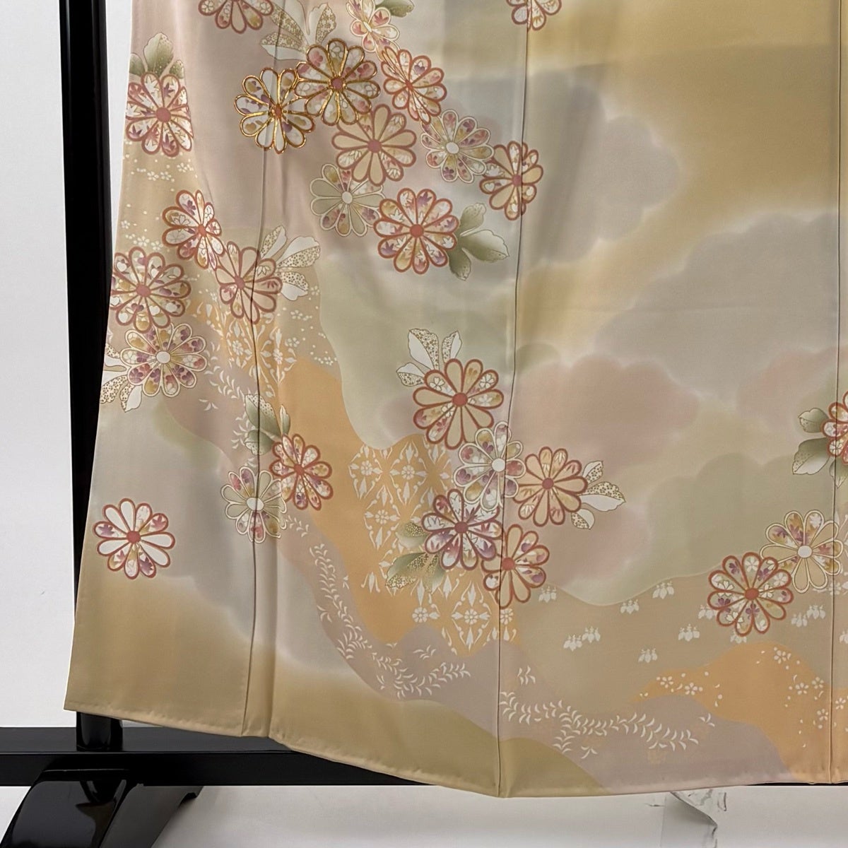 訪問着 身丈161cm 裄丈67.5cm L 袷 中村乃武夫 落款あり 菊 雪輪 刺繍 金彩 灰茶 正絹 逸品