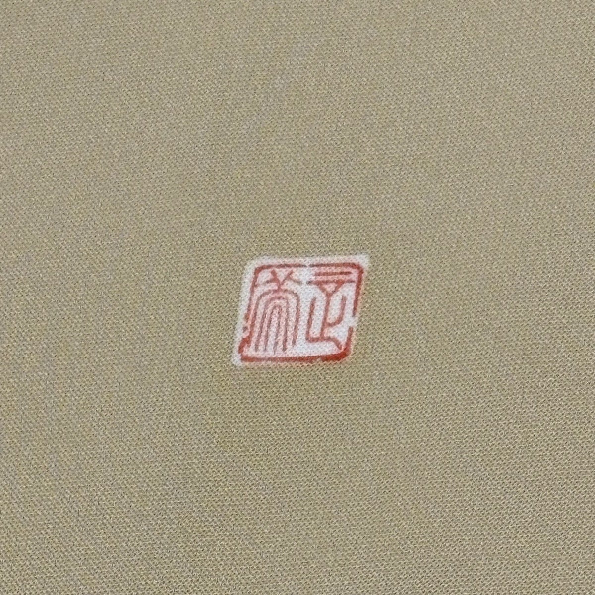 訪問着 身丈158.5cm 裄丈68cm L 袷 落款あり 草花 シルエット 金糸 抹茶色 正絹 秀品 一つ紋