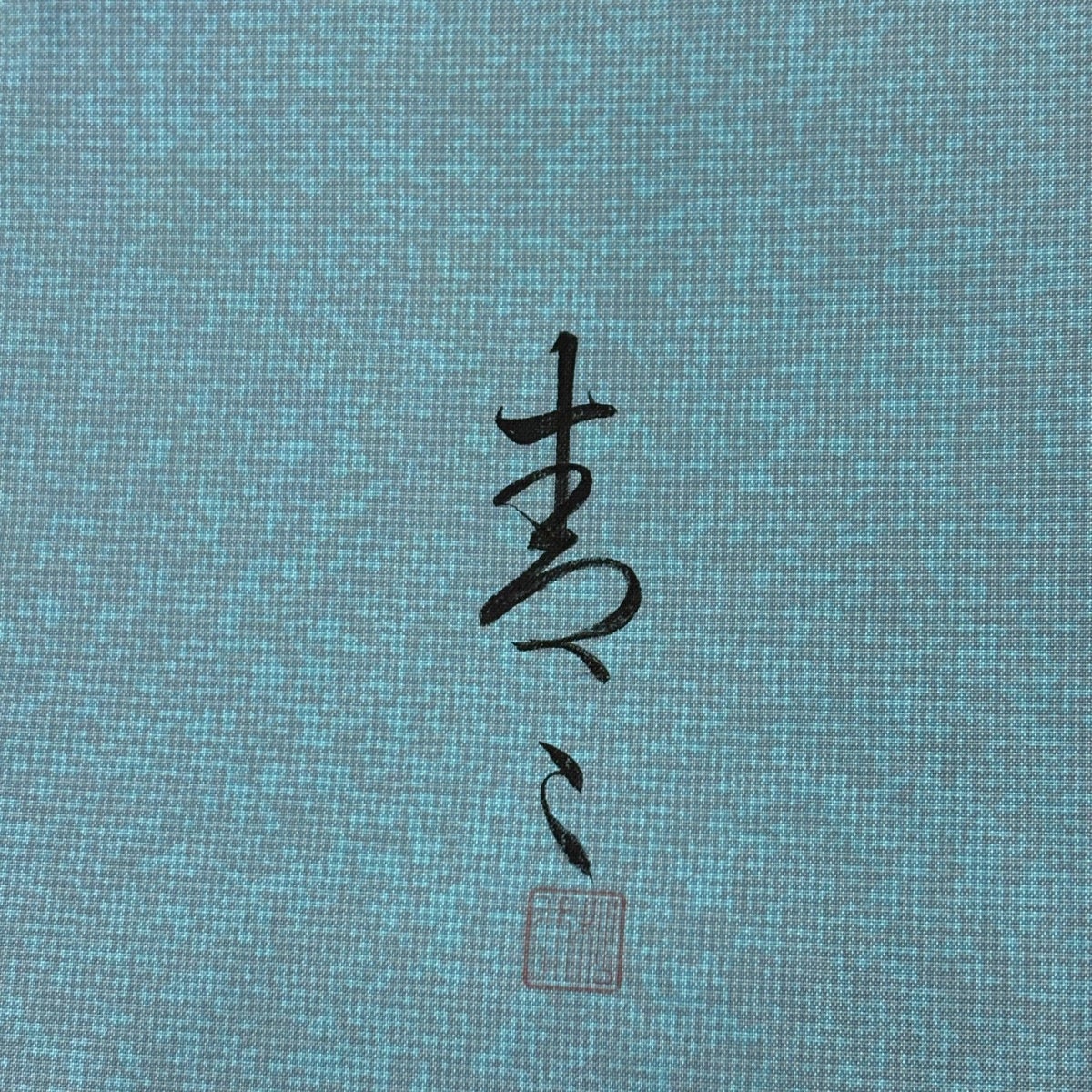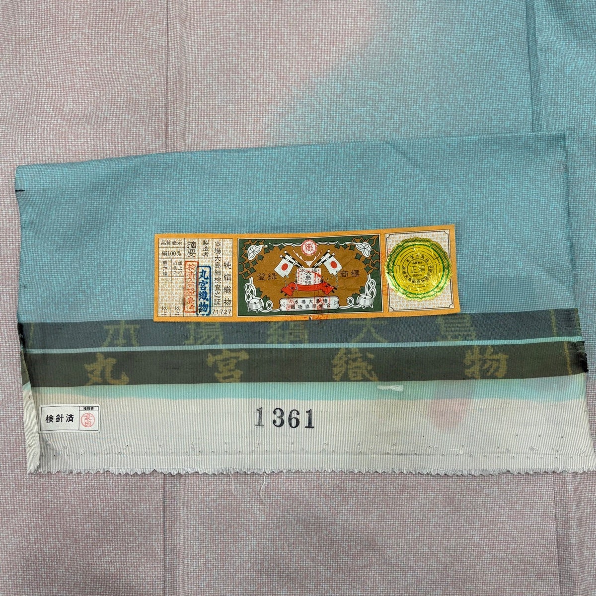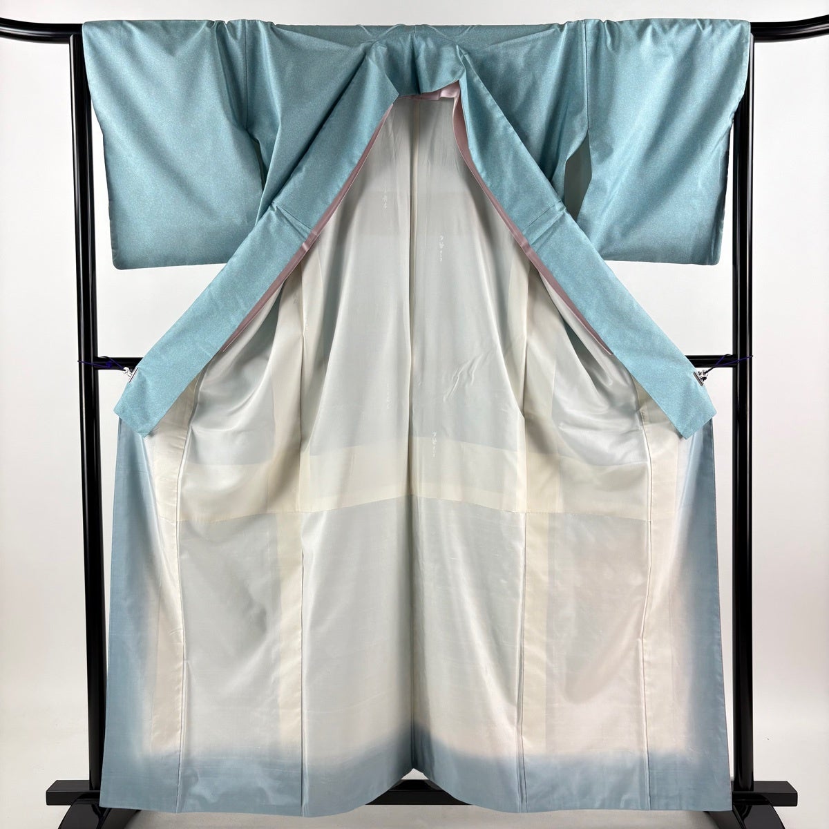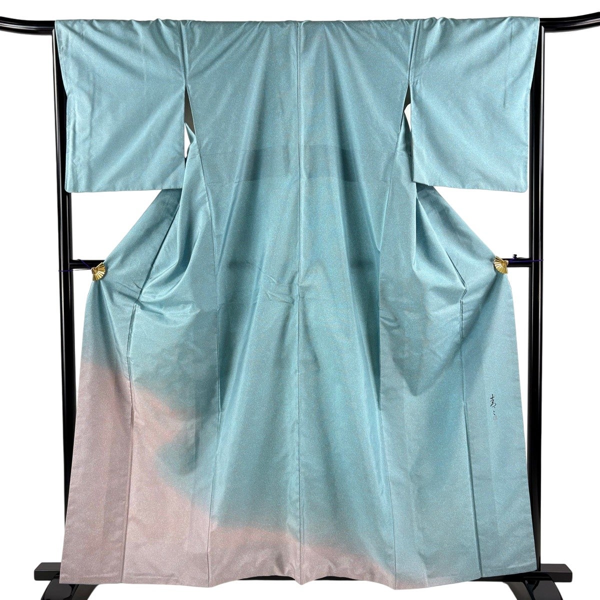 付下げ 身丈161cm 裄丈66cm M 袷 松井青々 大島紬地 落款あり 証紙あり 霞 ぼかし 水色 正絹 名品