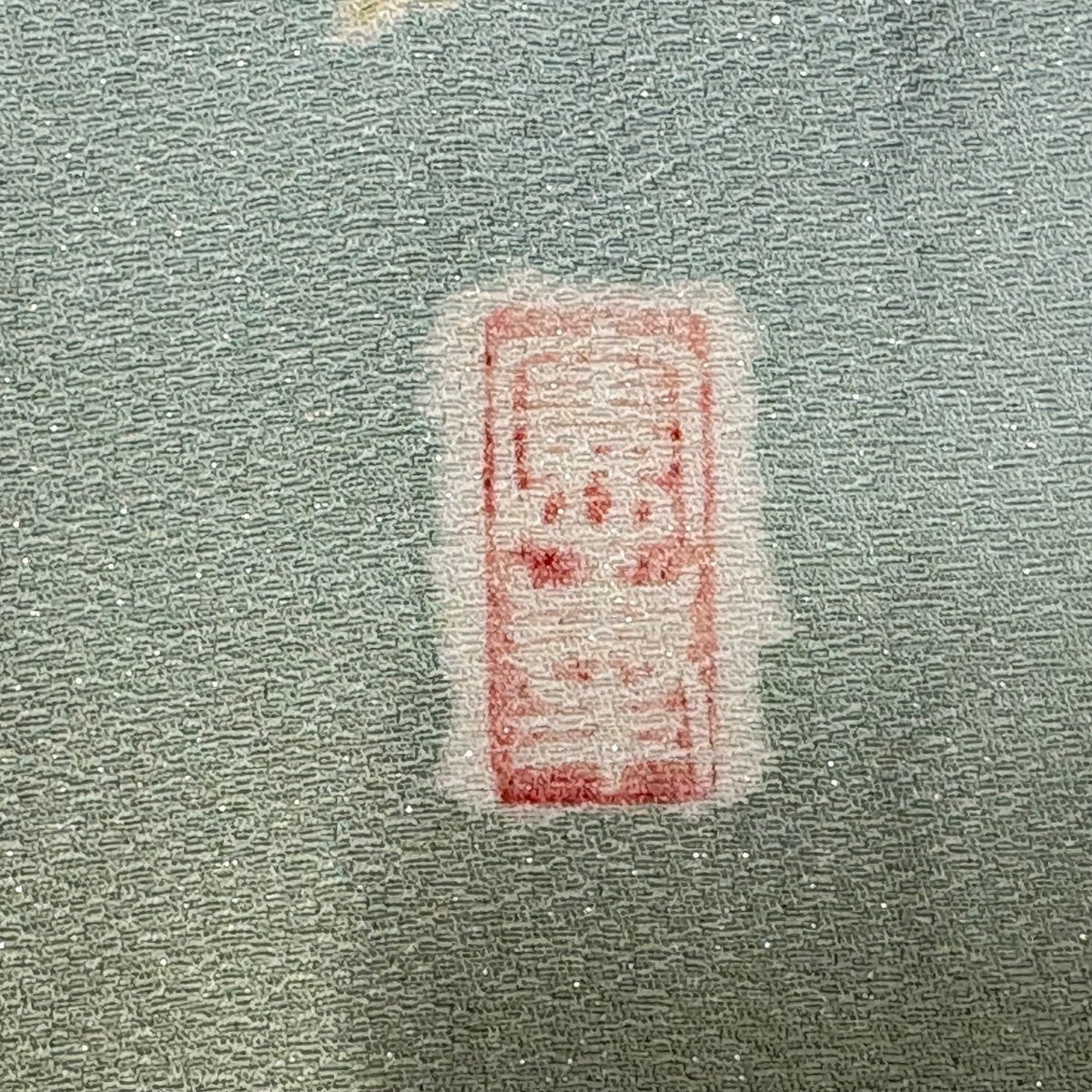 【美品】 小紋 身丈160.5cm 裄丈63cm S 袷 斉藤三才 落款あり ぼかし柄 灰緑 正絹 秀品 一つ紋
