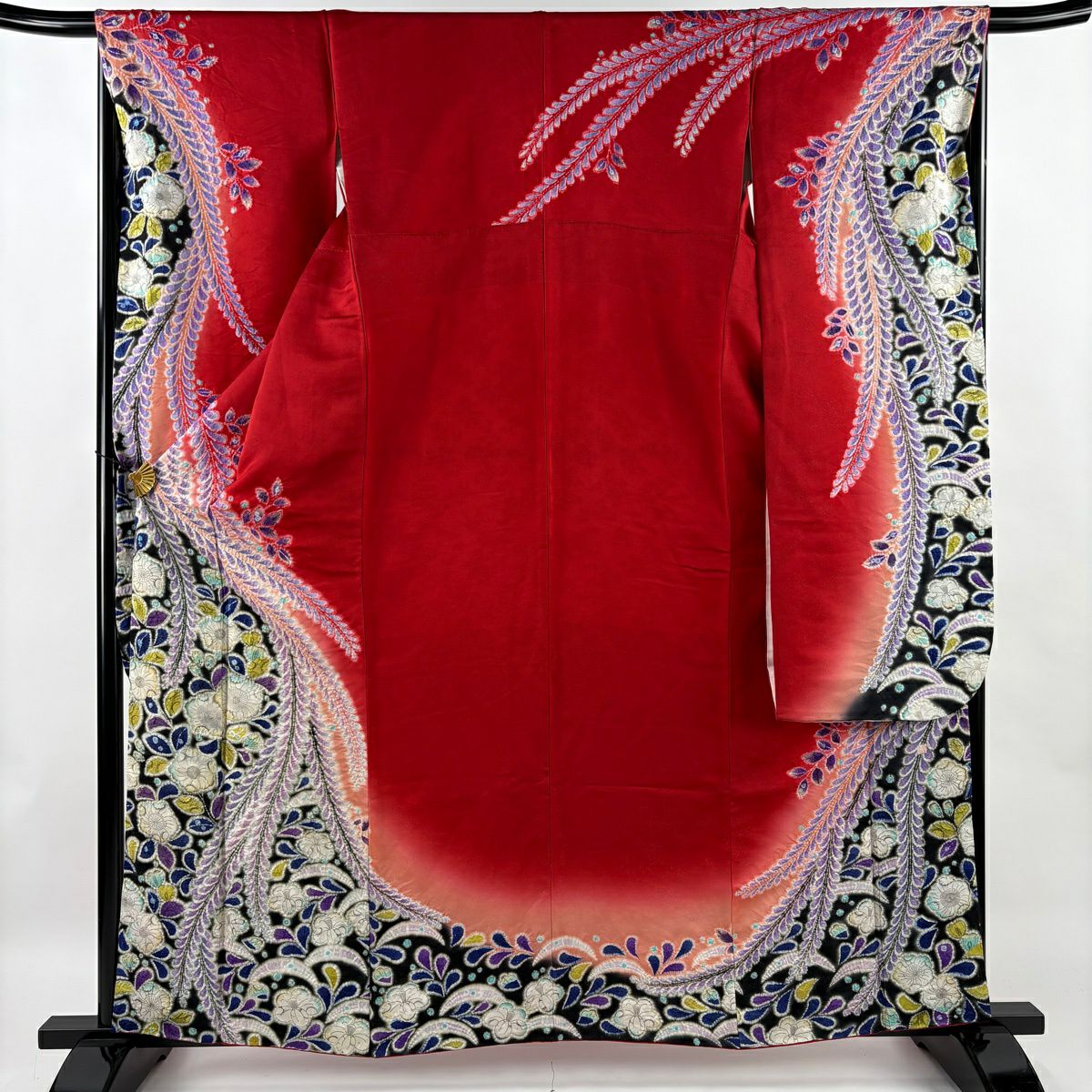訪問着 身丈169.5cm 裄丈67cm M 袷 落款あり 枝花 草花 染め分け ぼかし 薄ピンク 正絹 名品