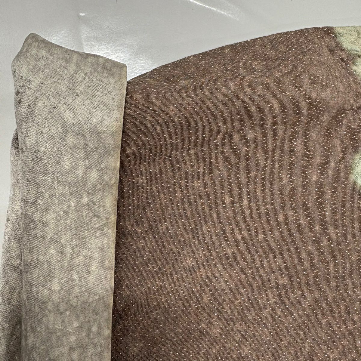 【美品】 小紋 身丈167cm 裄丈65.5cm M 袷 袋帯セット 雲文 草花 金彩 絞り 薄茶色 正絹 秀品