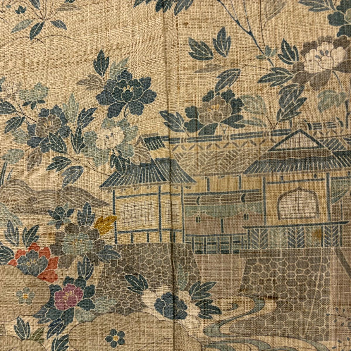 【美品】 付下げ 身丈157.5cm 裄丈65.5cm M 袷 落款あり 風景 建物 金彩 ぼかし 黒灰 正絹 秀品