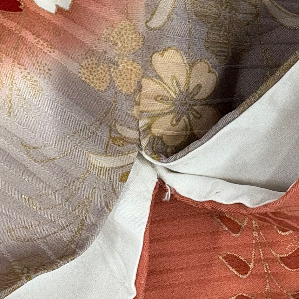 訪問着 身丈163cm 裄丈66cm M 袷 松井青々 落款あり 草花 ヱ霞 金糸 金彩 薄オレンジ 正絹 逸品