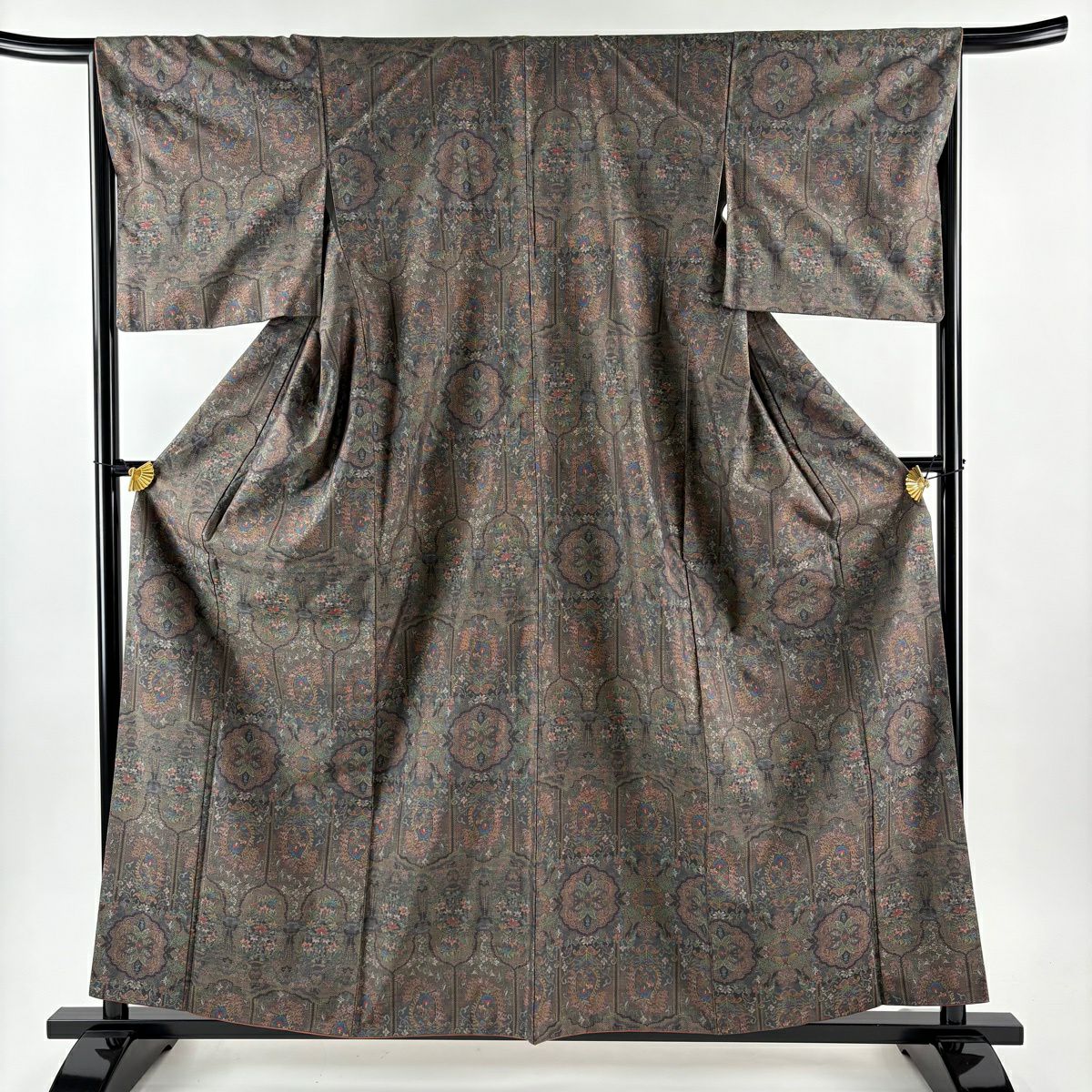 【美品】 付下げ 身丈158.5cm 裄丈63cm S 袷 ますいわ屋 桐 橘 箔 金糸 灰茶 正絹 秀品 一つ紋