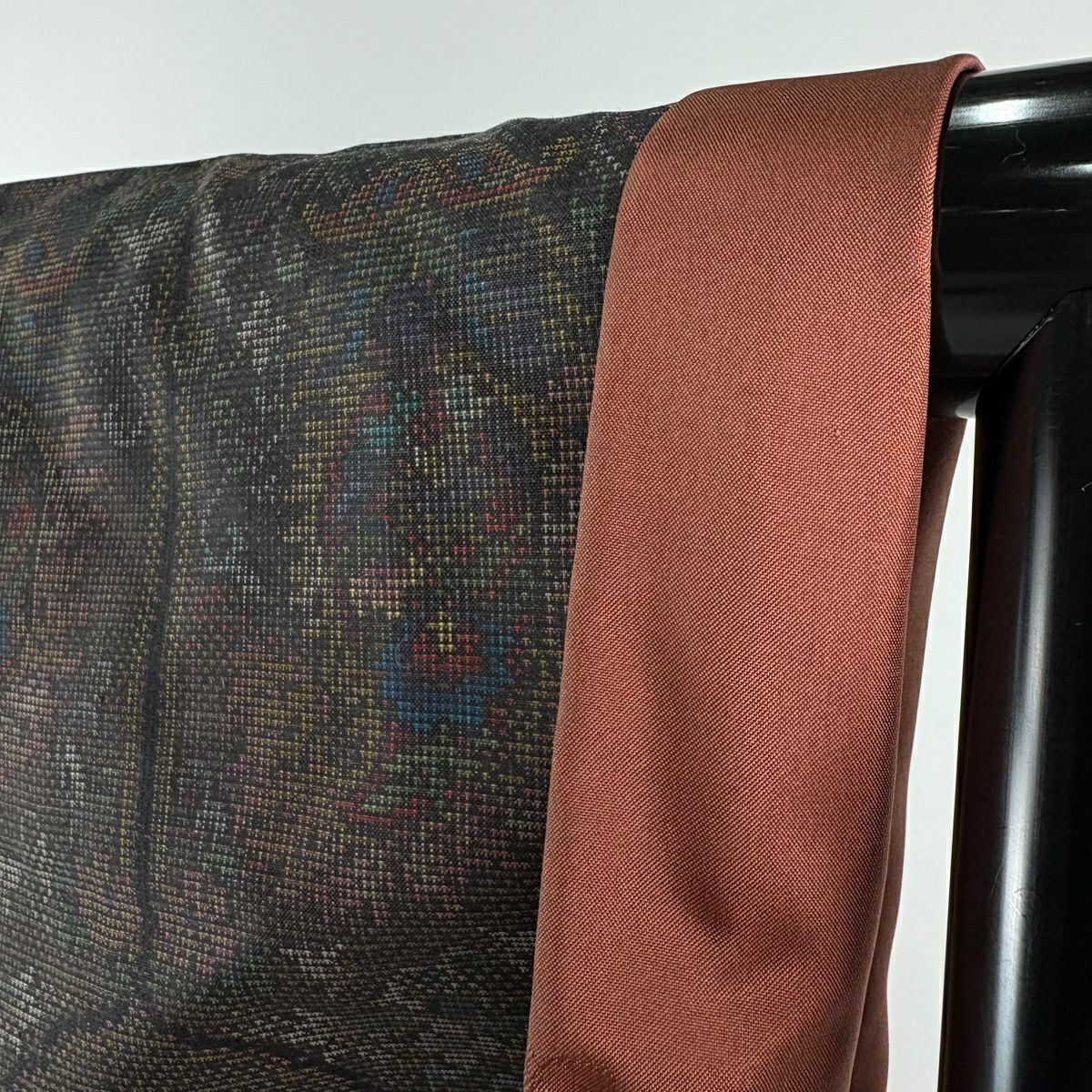 小紋 身丈161.5cm 裄丈63cm S 袷 浅井青仁 落款あり 銀杏 七宝 金彩 サーモンピンク 正絹 秀品