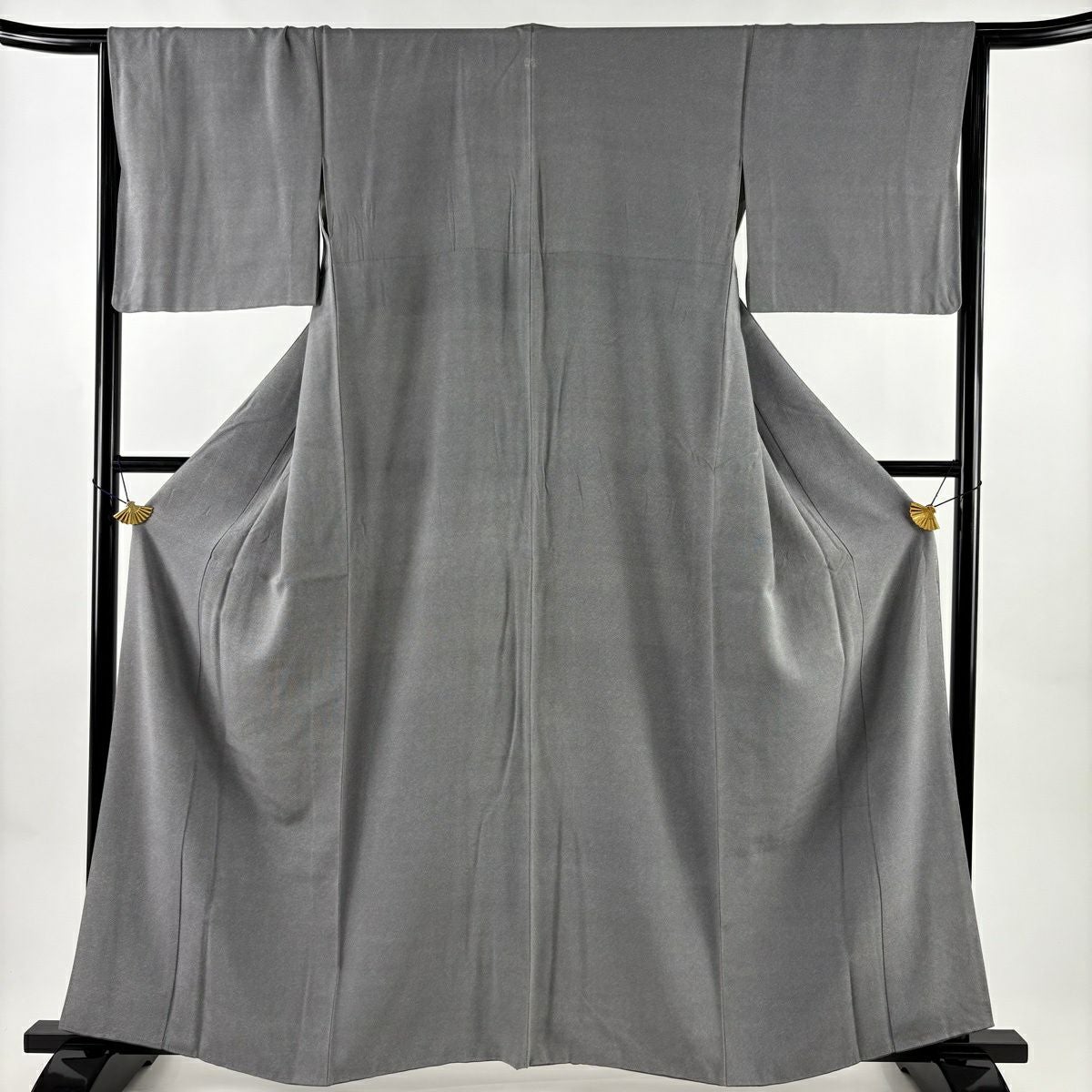 付下げ 身丈157cm 裄丈64.5cm M 袷 袋帯セット 草花 縦縞模様 絞り 刺繍 灰色 正絹 秀品 一つ紋