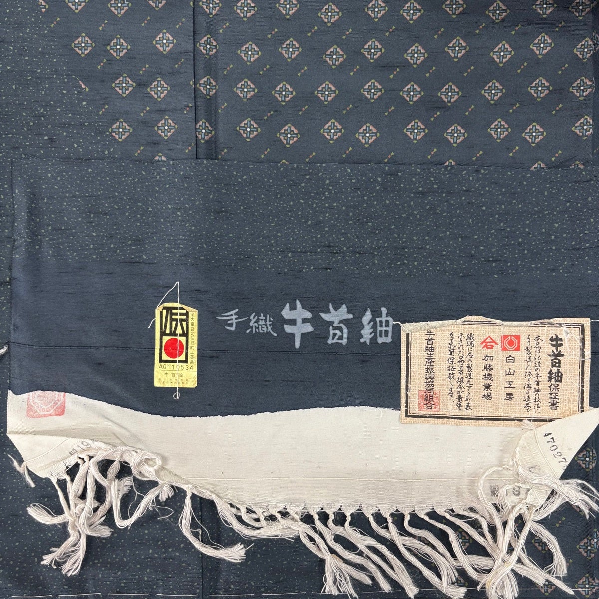 他の画像を見る 50%OFF 【美品】 小紋 身丈162.5cm 裄丈63cm S 袷 名古屋帯セット 落款あり 寄せ柄 鱗 藍色 正絹 名品 K50 当店通常価格 ¥ 33,800 ¥ 16,900 税込