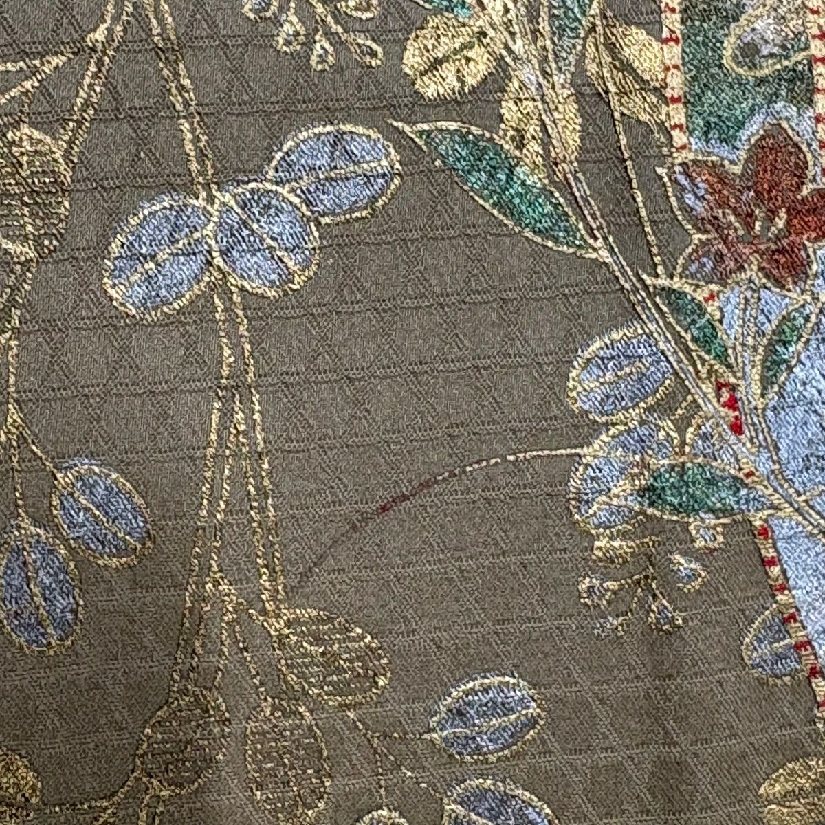 他の画像を見る 【最終値引き】 70%OFF 【美品】 訪問着 身丈157cm 裄丈65.5cm M 袷 草花 金糸 絞り 茶緑色 正絹 名品 K70 当店通常価格 ¥ 15,800 ¥ 4,700 税込