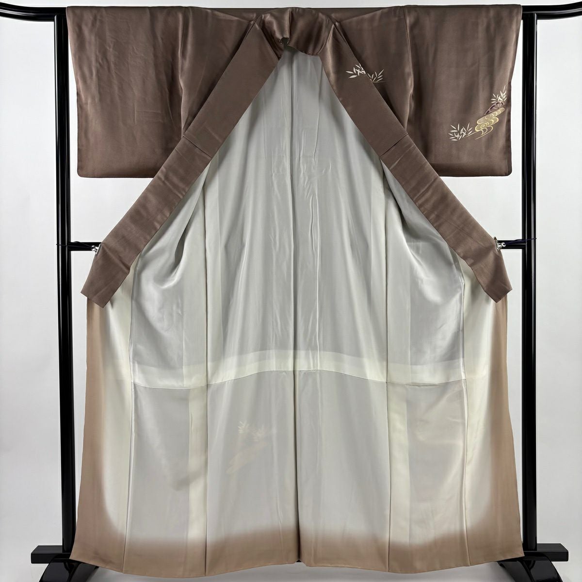 他の画像を見る 【最終値引き】 70%OFF 付下げ 身丈151.5cm 裄丈66.5cm M 袷 菊 芝 金糸 金彩 焦茶色 正絹 名品 五つ紋 K70 当店通常価格 ¥ 13,800 ¥ 4,140 税込