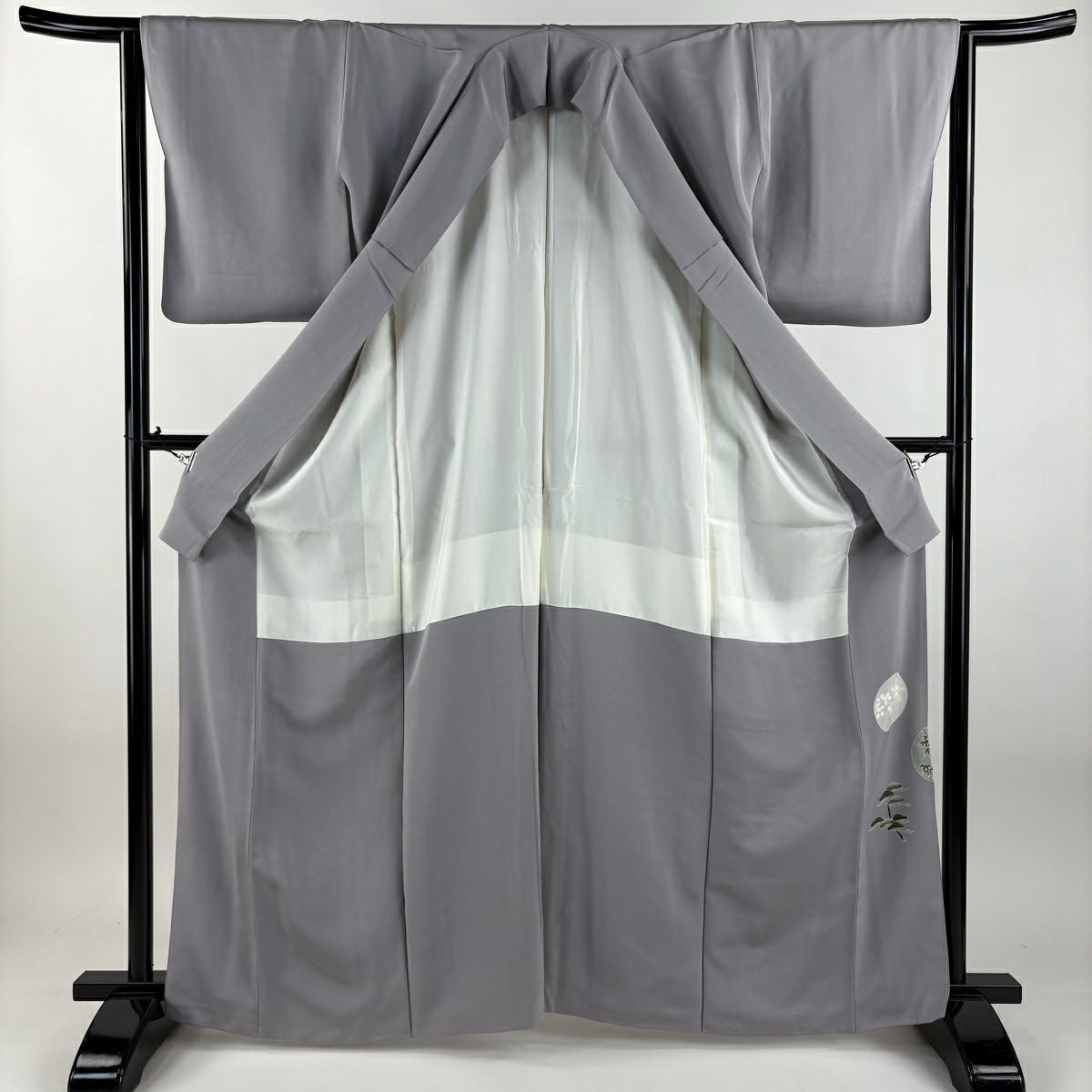 他の画像を見る 【最終値引き】 70%OFF 訪問着 身丈156.5cm 裄丈65cm M 袷 牛首紬地 落款あり 樹木 草花 灰色 正絹 逸品 K70 当店通常価格 ¥ 50,800 ¥ 15,240 税込